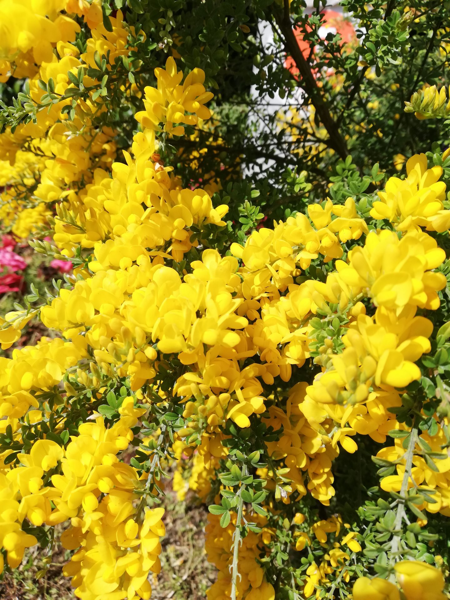 Багаторічна бобова рослина виростає до 1 м. Дрібні (11-13 мм завдовжки), жовті, схожі на горошок квіти, зібрані в групи по 12 або більше на кінчиках гілок. Цвіте з листопада по березень. Листя має 5 лопатей.