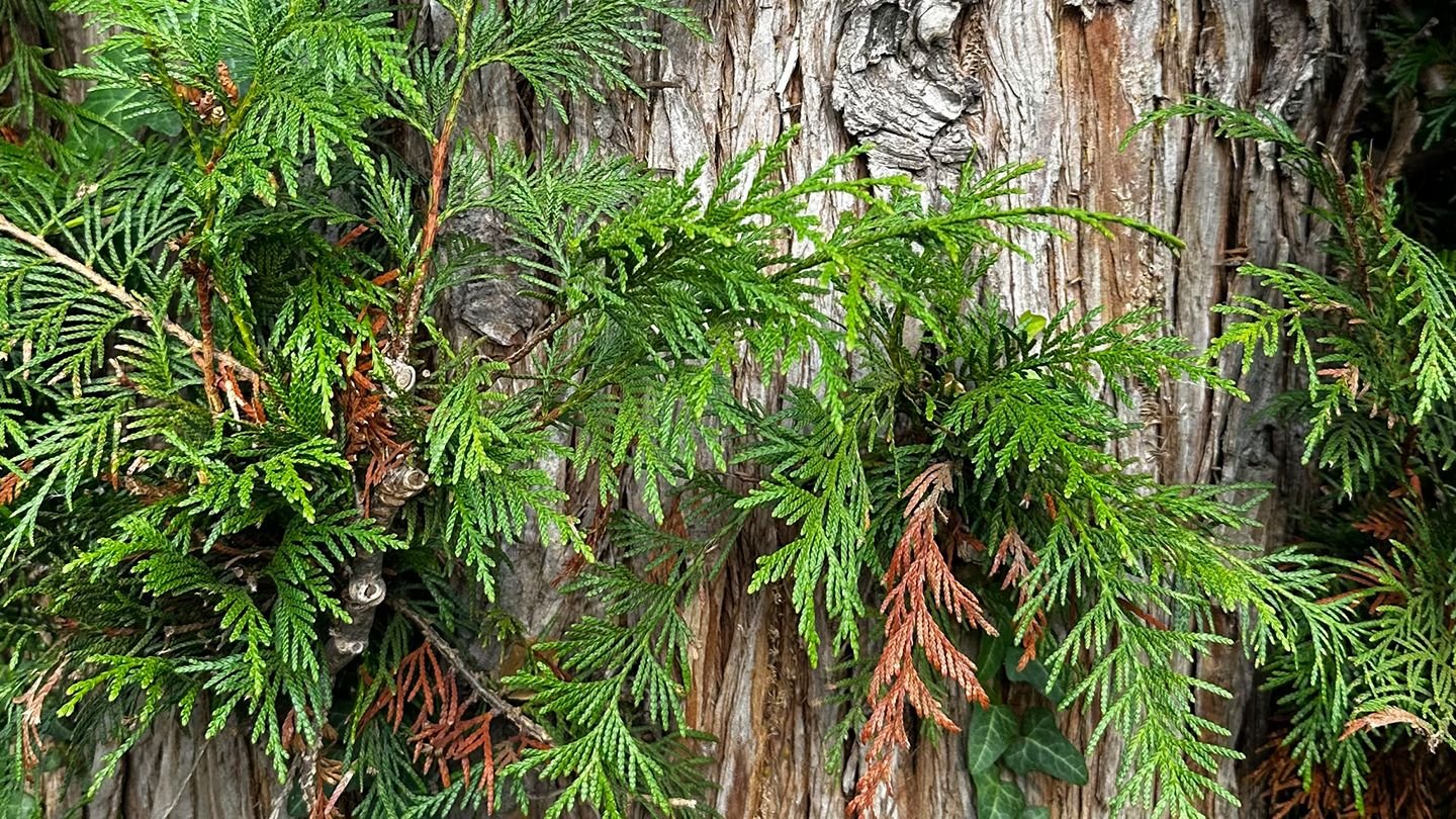 - Trunk: fibrous, thin bark, clearly longitudinally fissured with age, peeling off in strips