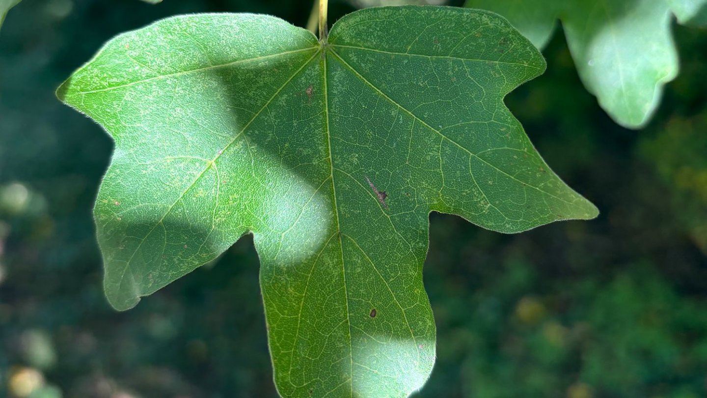 Acer campestre Height: 10-15 m Trunk: sometimes multi-stemmed and shrub-like, bark fine-longitudinally fissured, smaller growth than other maple species Leaves: 3-5 lobed, 5-10 cm wide, round leaf ends, finely haired, with milky sap Fruits/seeds: Fruits with horizontal fruit wings (‘nose pinchers’) for wind dispersal Photos: Janina Deutschmann (1,2)