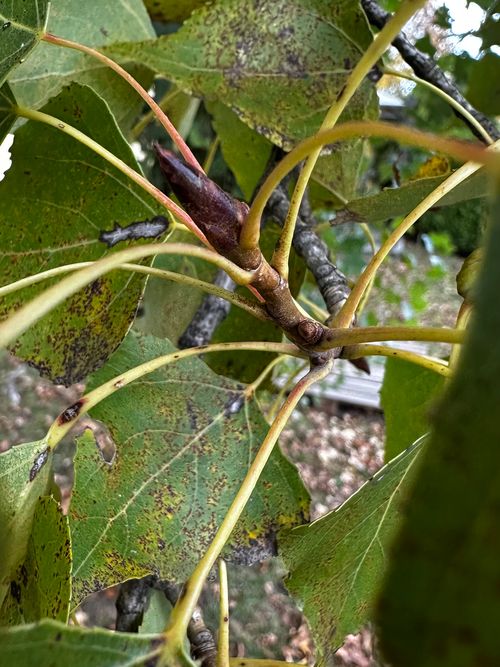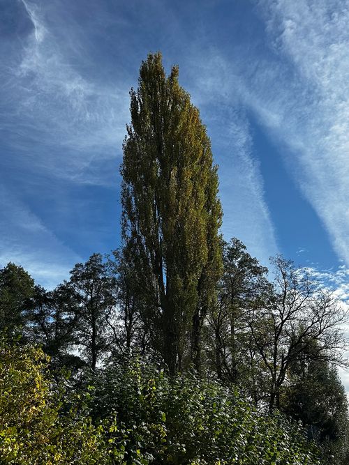 Populus nigra ‘Italica‘ Height: up to 25 m Trunk: grey bark, deeply longitudinally fissured Crown: narrow, columnar Leaves: triangular to diamond-shaped, with fine serrated edges, 5-12 cm long, on flattened stem Flowers: drooping, red catkins in March/April before leaves emerge Other: frequent urban tree, cultivated from native black poplar Photos: Martina Gehret (1,2)