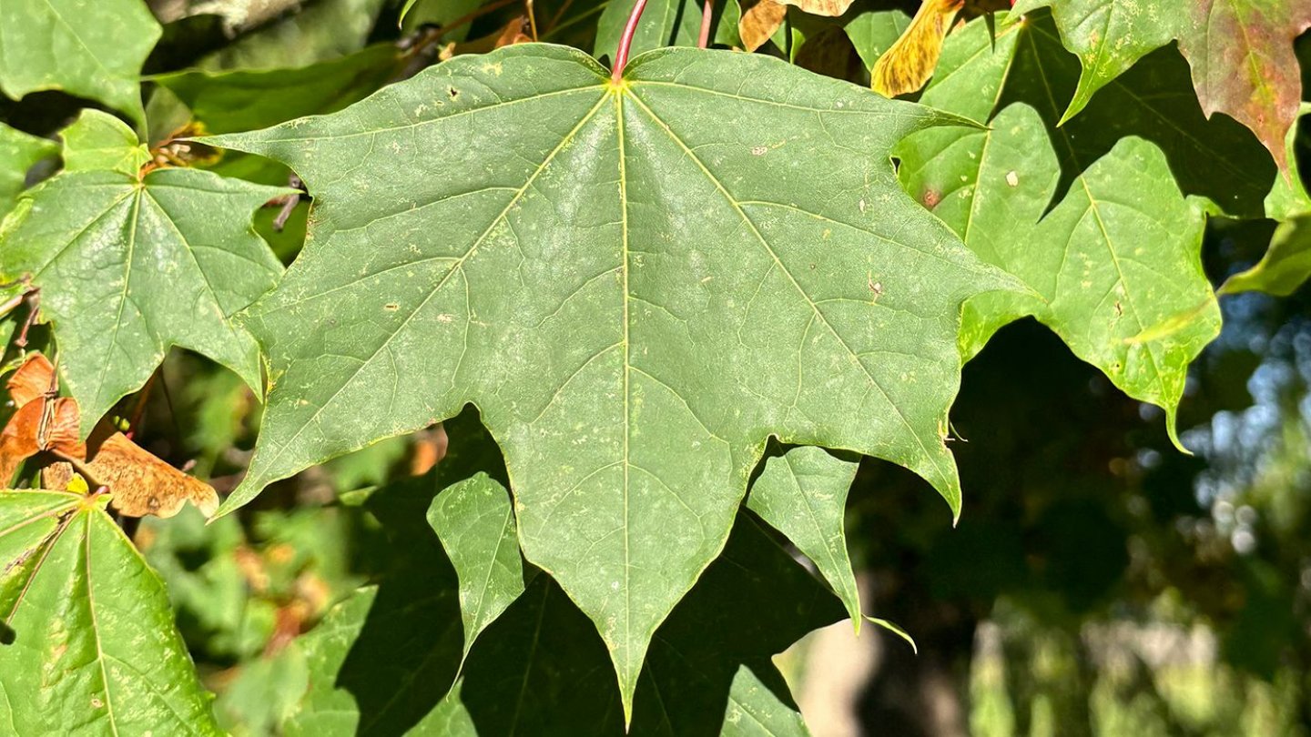 Acer platanoides Height: up to 20 m Trunk: bark longitudinally fissured, dark brown to blackish Leaves: 5-lobed with distinct tips, 12-18 cm wide, with milky sap Buds: green buds Flowers: yellow-green, clustered flowers in April/May before leaves emerge Fruits/seeds: Fruits with right-angeled fruit wings (‘nose pincher’) for wind dispersal (approx. 3 cm) Photos: Janina Deutschmann (1,2,3), Wolfgang Schödel (4)