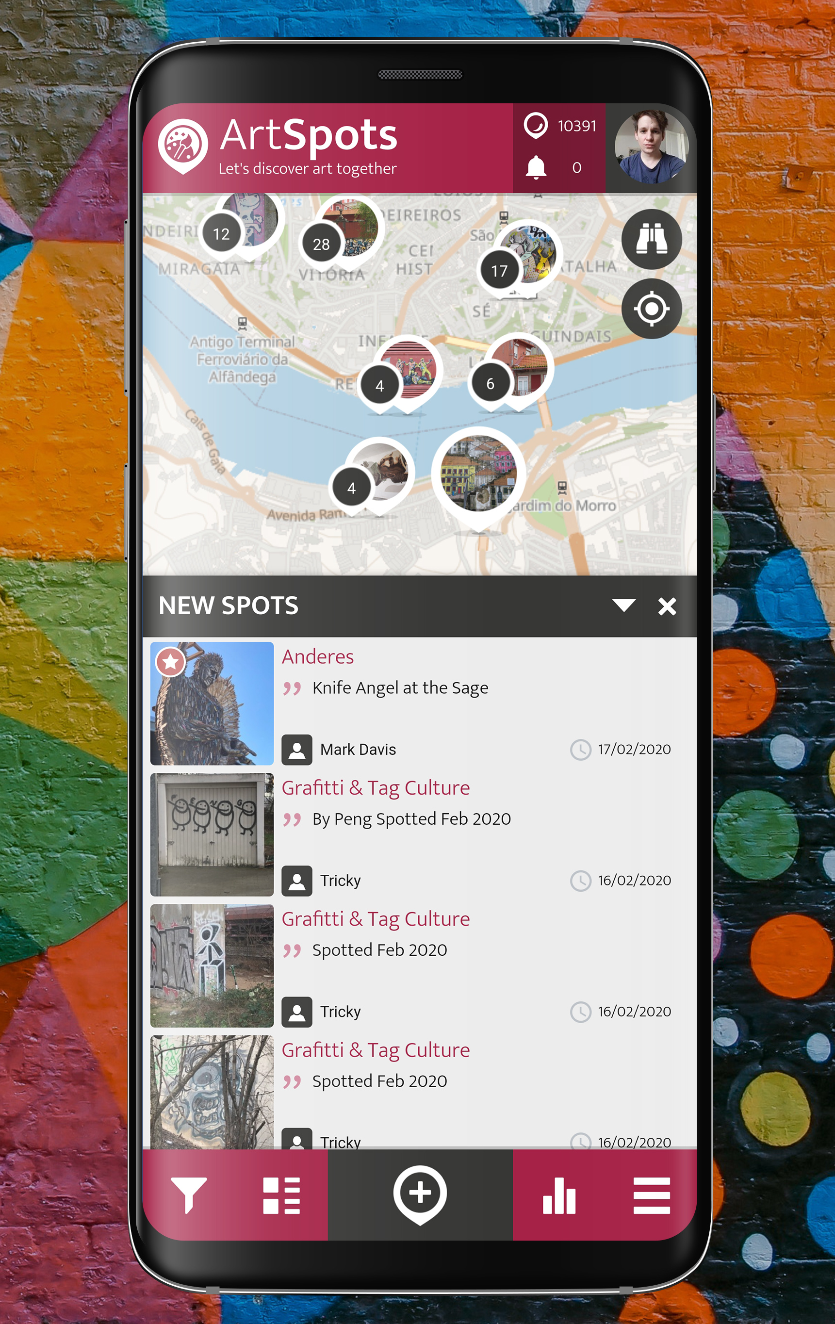 Do you love discovering art? With the ArtSpots app, you can share your art discoveries and own artworks with a community full of art lovers - and put your discoveries on the map. Download, register and start spotting - it is as simple as that.