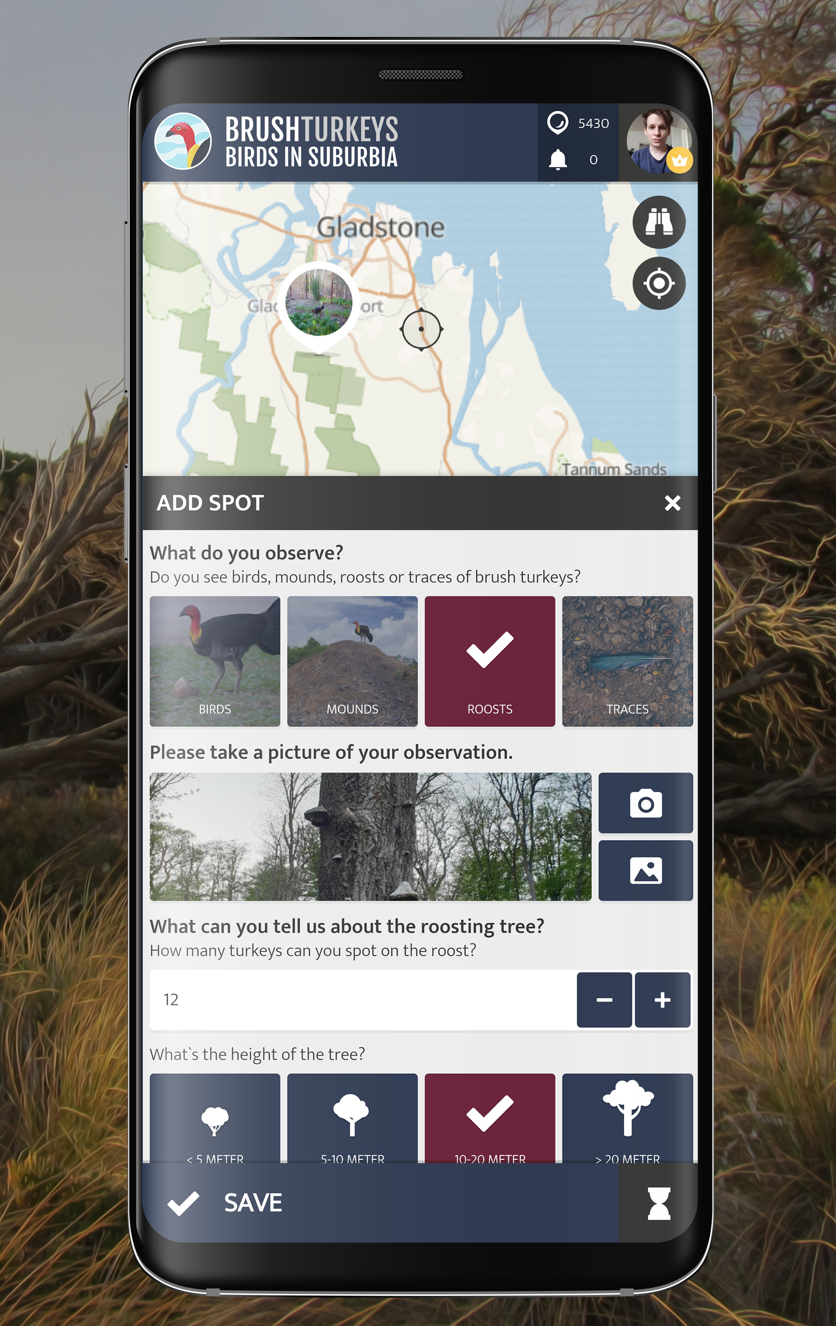 With the app, you can gather sightings on the Australian Brush-turkey and observe their behaviour. Your observations help to understand better how these birds adapt to their surroundings.