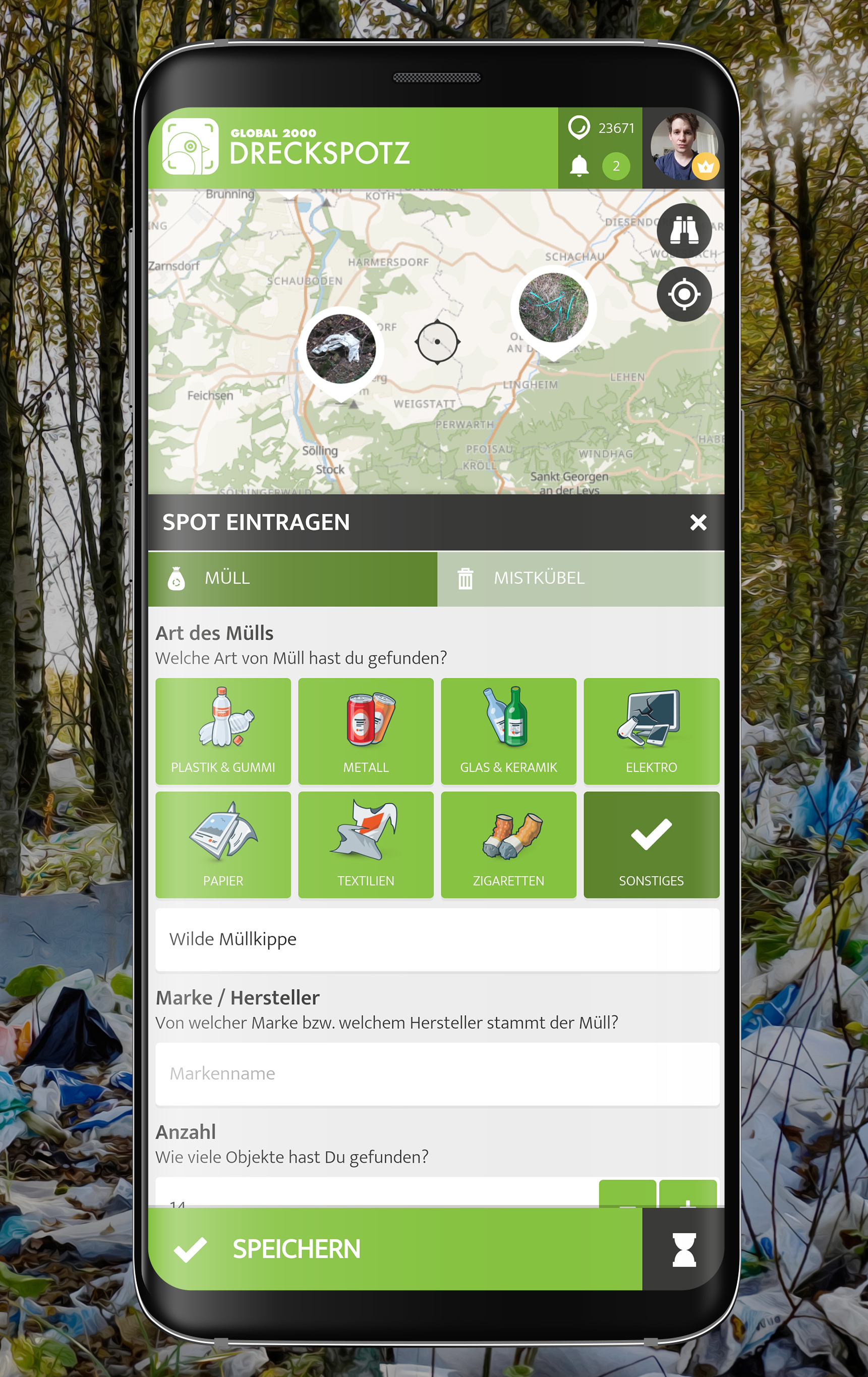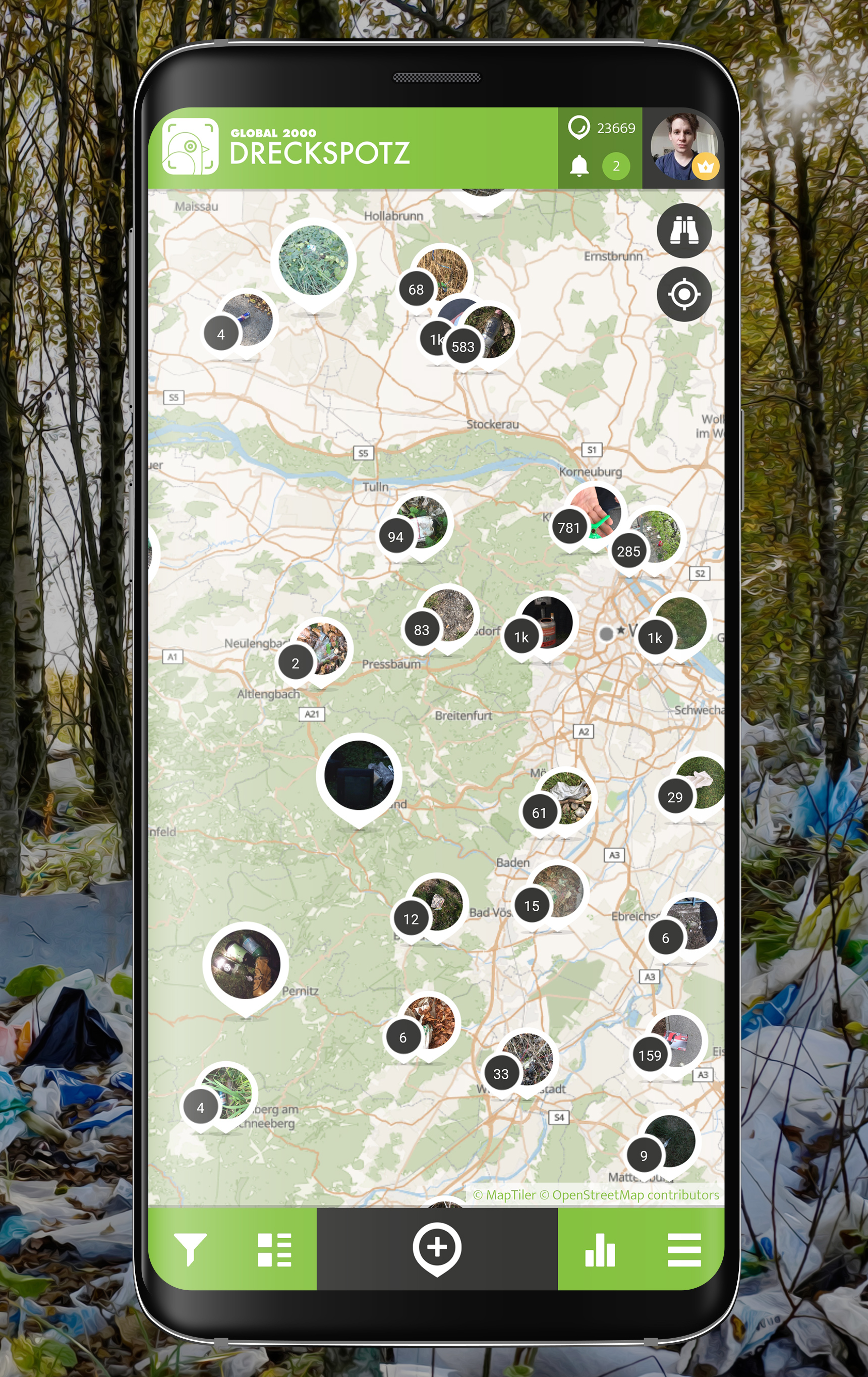The GLOBAL 2000 DreckSpotz App should not only make our nature a little cleaner, but also ensure that it stays that way in the long term. With the app, people from all over Austria and beyond can help to collect data in order to develop long-term solutions for the waste problem.