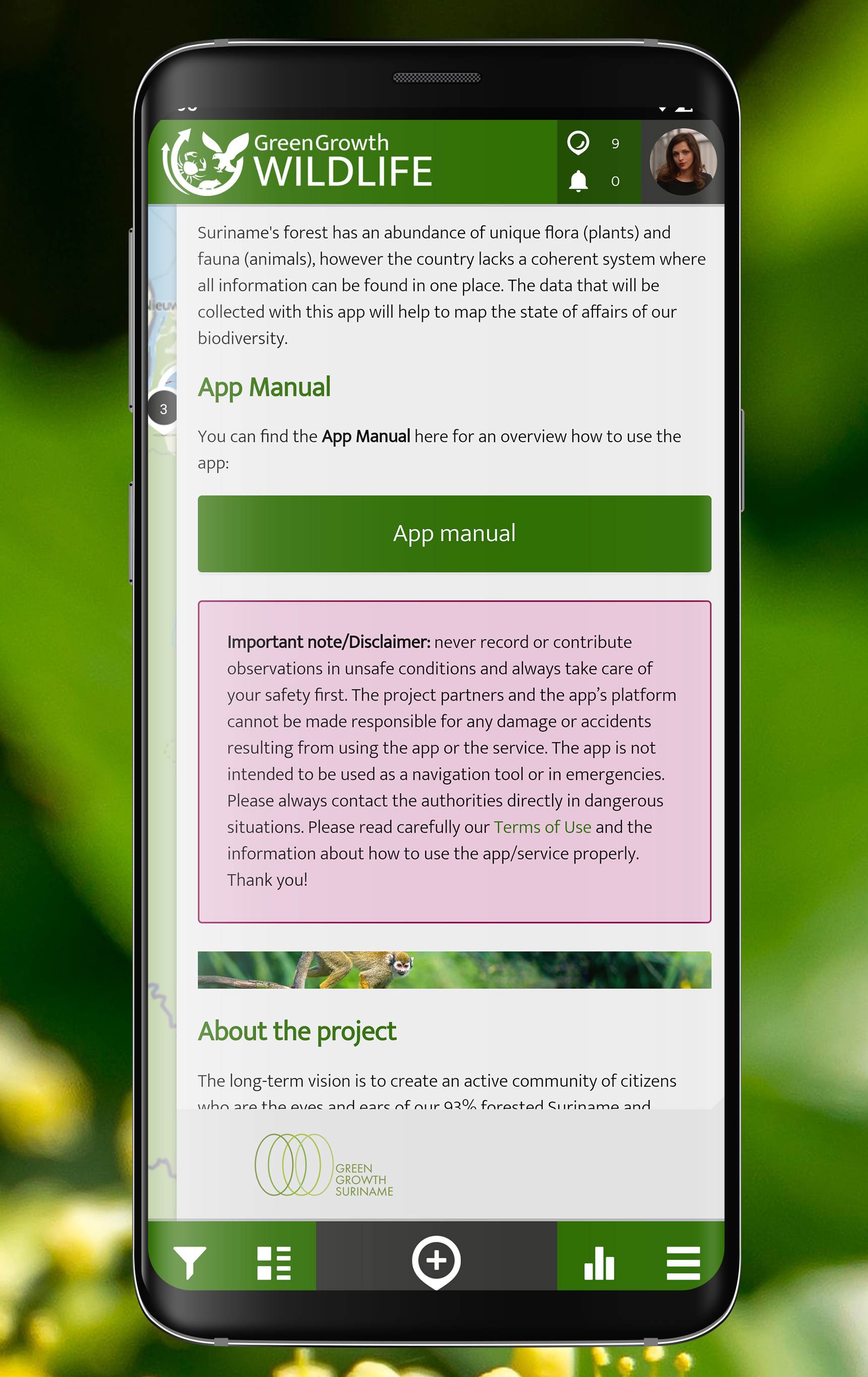 Suriname's lush forests are home to a plethora of unique flora and animals. Despite this abundance, there is still a lack of a unified system that consolidates all critical information in a single, easily accessible location. This is where the Green Growth Wildlife app comes in, providing a complete platform for collecting vital information that will help map and understand the health of Suriname's biodiversity.