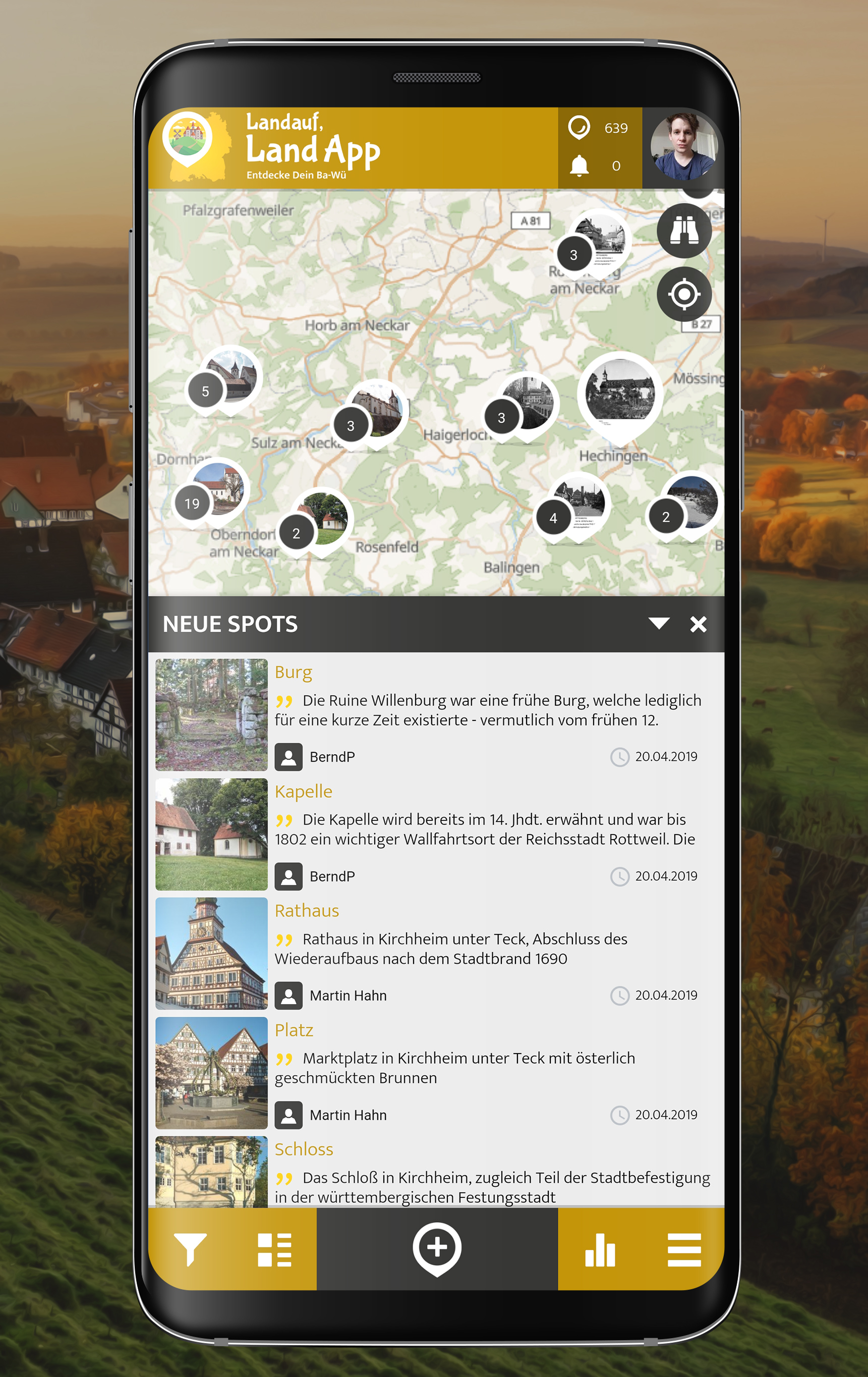 With your help, we would like to map architectural, cultural and natural monuments all over Baden-Württemberg. Together we will use this app to find out what there is to see in Baden-Württemberg! We are interested in your discoveries and favourite places, no matter in which corner of our state. Because who knows them better than you?
