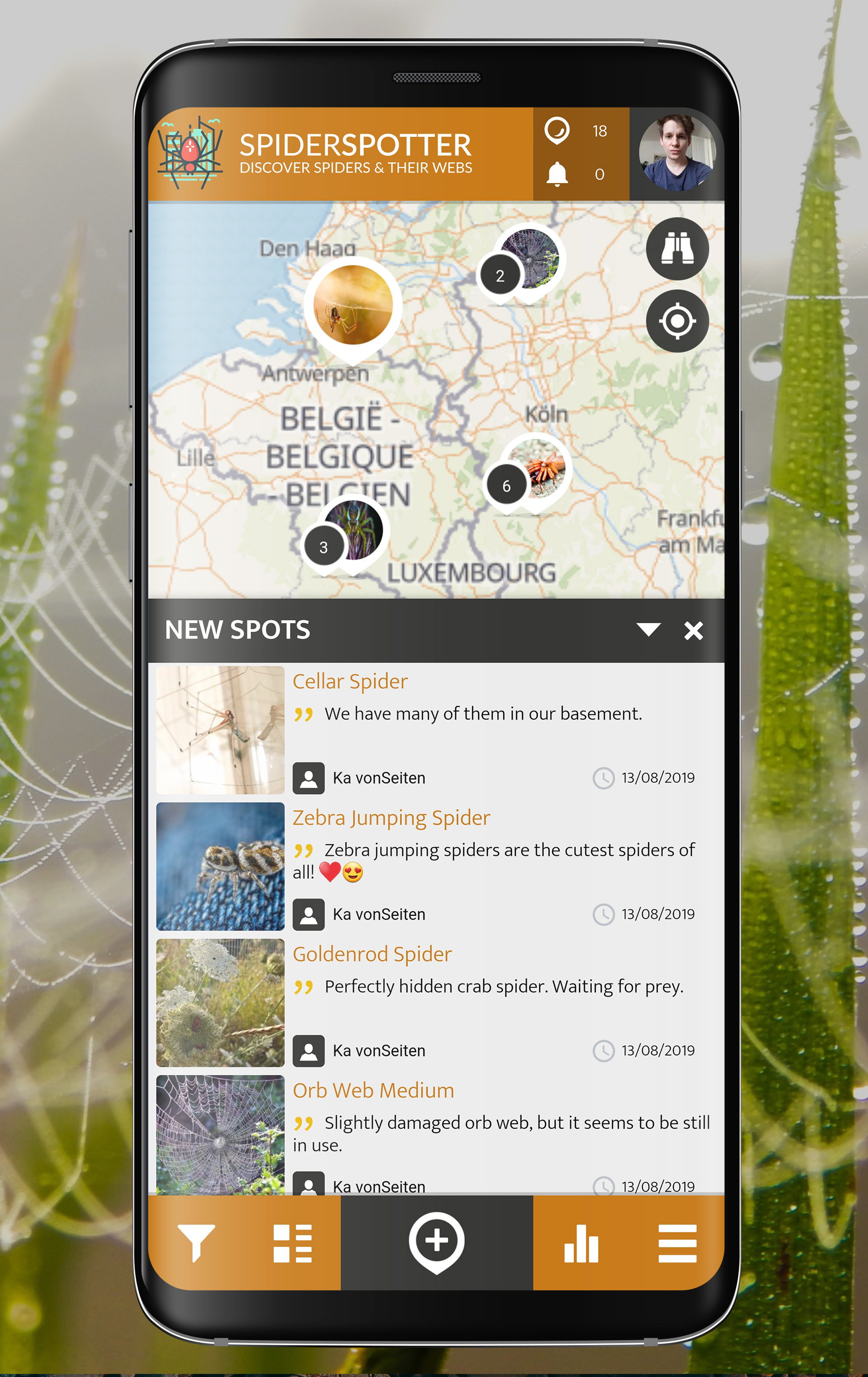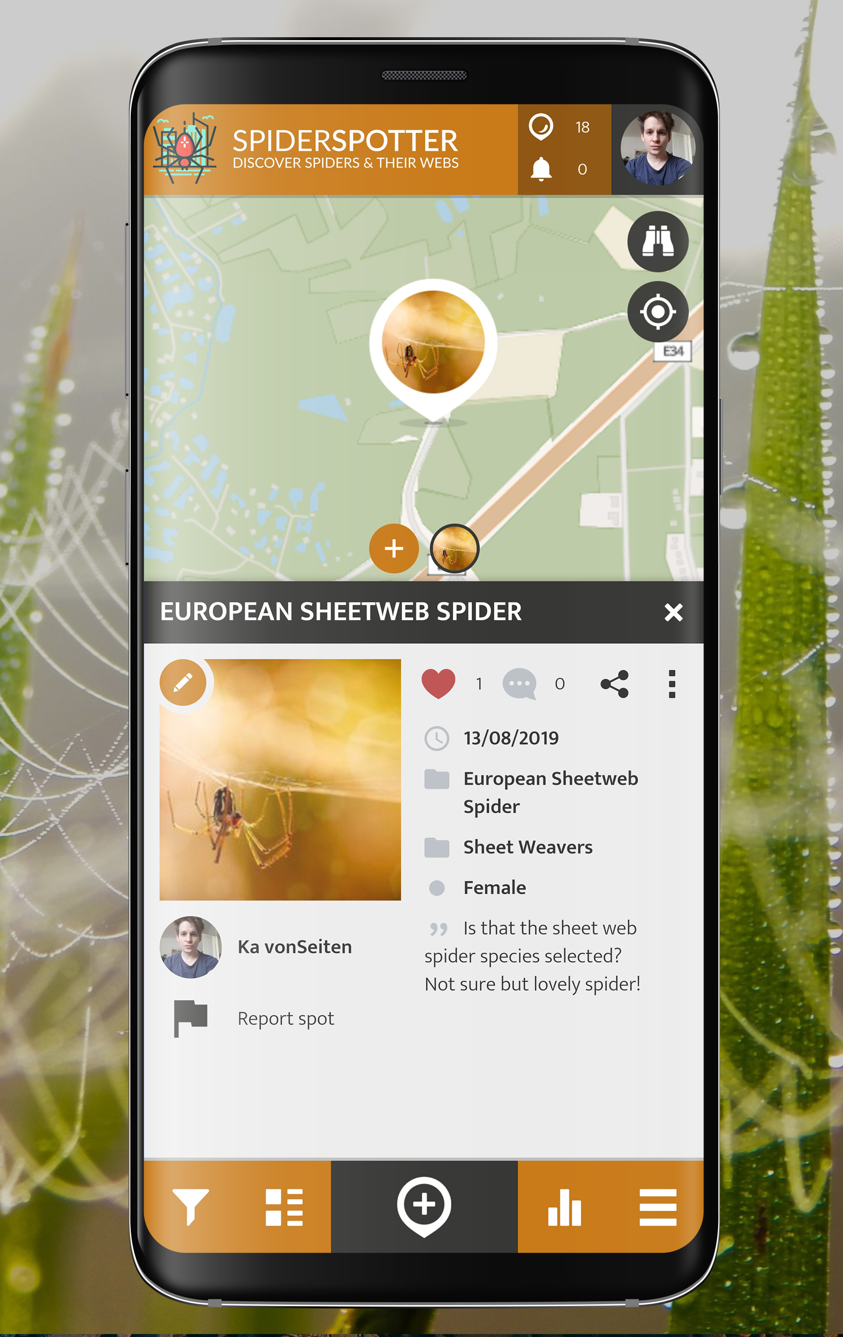 Do you like spiders? In the SpiderSpotter Citizen Science app, you can share your observations of spiders and their webs to help the research about their adaptation to the environment and contribute to biodiversity monitoring. The app features a range of spider species with and it has an active community of spider enthusiasts and arachnologists. If you love spiders (or at least appreciate them) join this Citizen Science project!