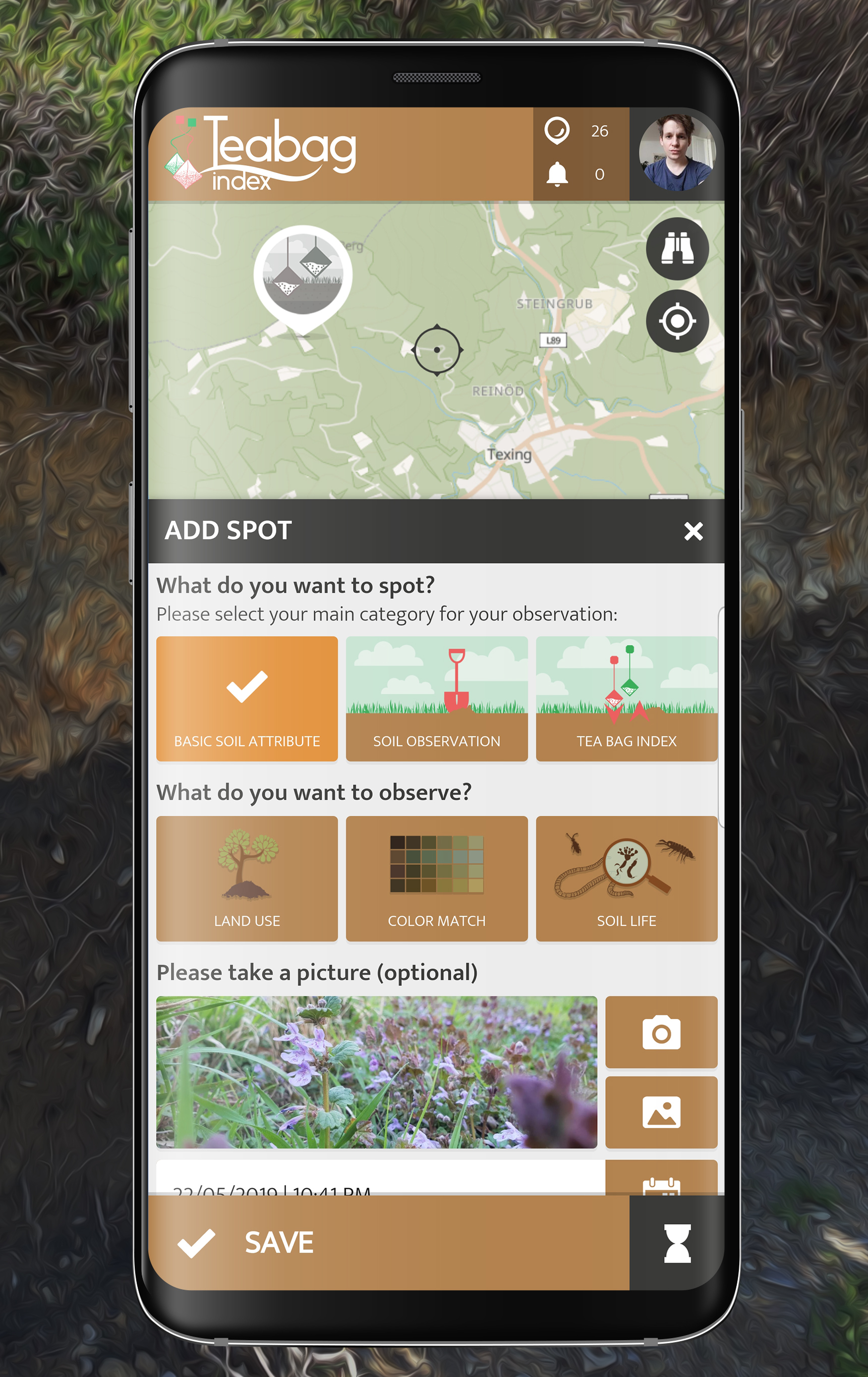 In the Tea Bag Index Citizen Science App, everything is about soil. Various observation categories are ready to participate in, from easy soil classification and testing to the well-known method of burying and weighting teabags to measure the decay rate of plants. Citizen Scientists are welcome to participate worldwide and contribute to improving climate models and soil research.