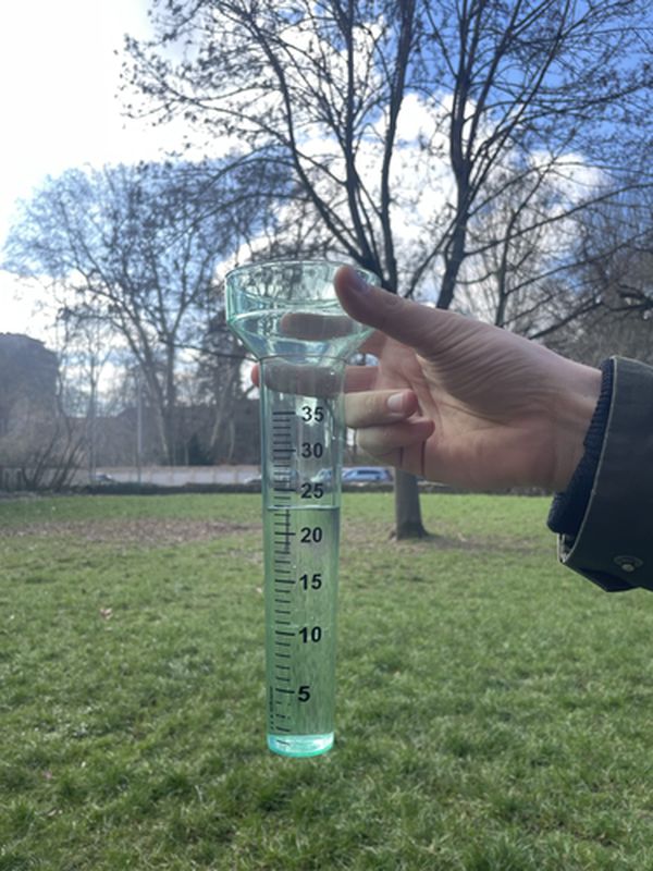 Piga picha ya kipimo chako cha mvua (tazama mfano hapa chini) na uhakikishe kuwa inawezekana kusoma thamani za namba kwa urahisi.