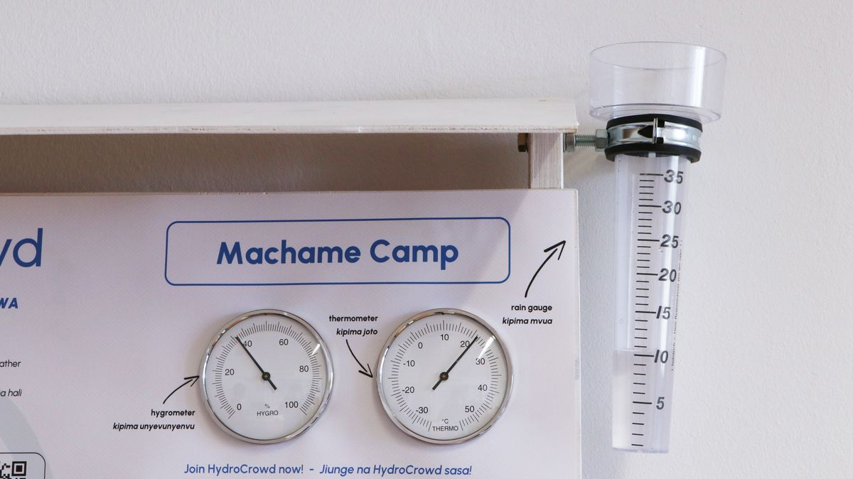 Je, uko kwenye kituo cha hali ya hewa? Piga picha ya ubao wa taarifa. Hakikisha kwamba inawezekana kusoma namba kwenye kipima joto, kipima unyevunyevu na kipima mvua kutoka kwenye picha (angalia mfano hapa chini).