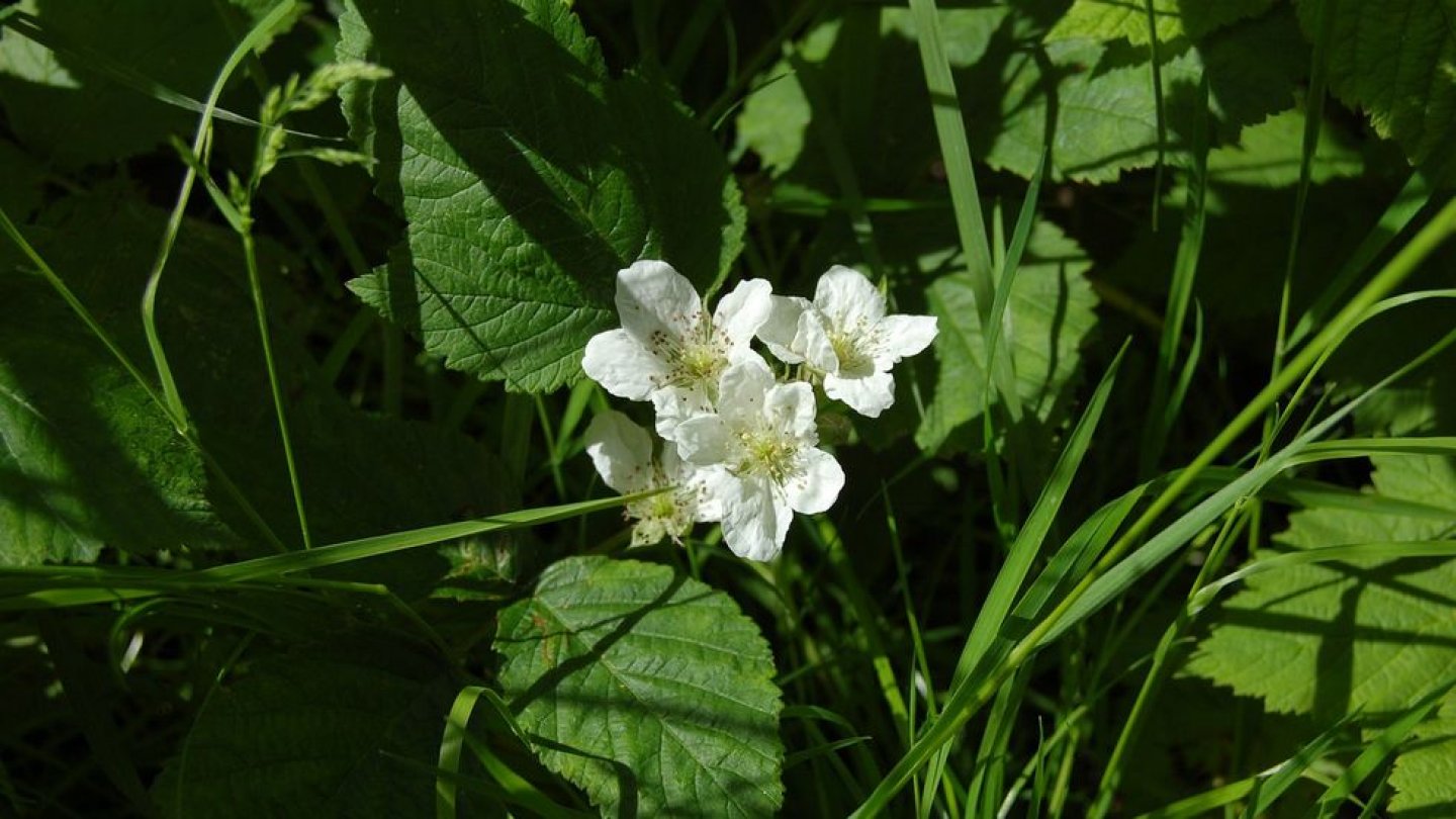 Caules longos, espinhosos e arqueados que crescem até 2 m. As flores têm 2-3 cm, 5 pétalas e são de cor rosa-creme. As plantas produzem amoras no final do verão.
