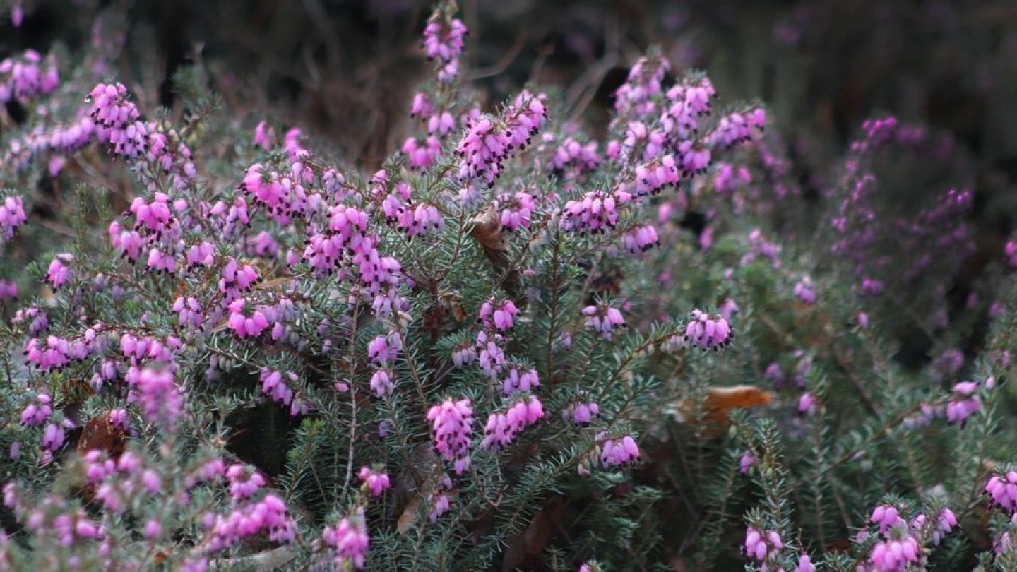 Érica tetralix Muitos ramos, até 60 cm de altura. Caules a enraizar na base da planta. Cachos de flores rosa-claro.