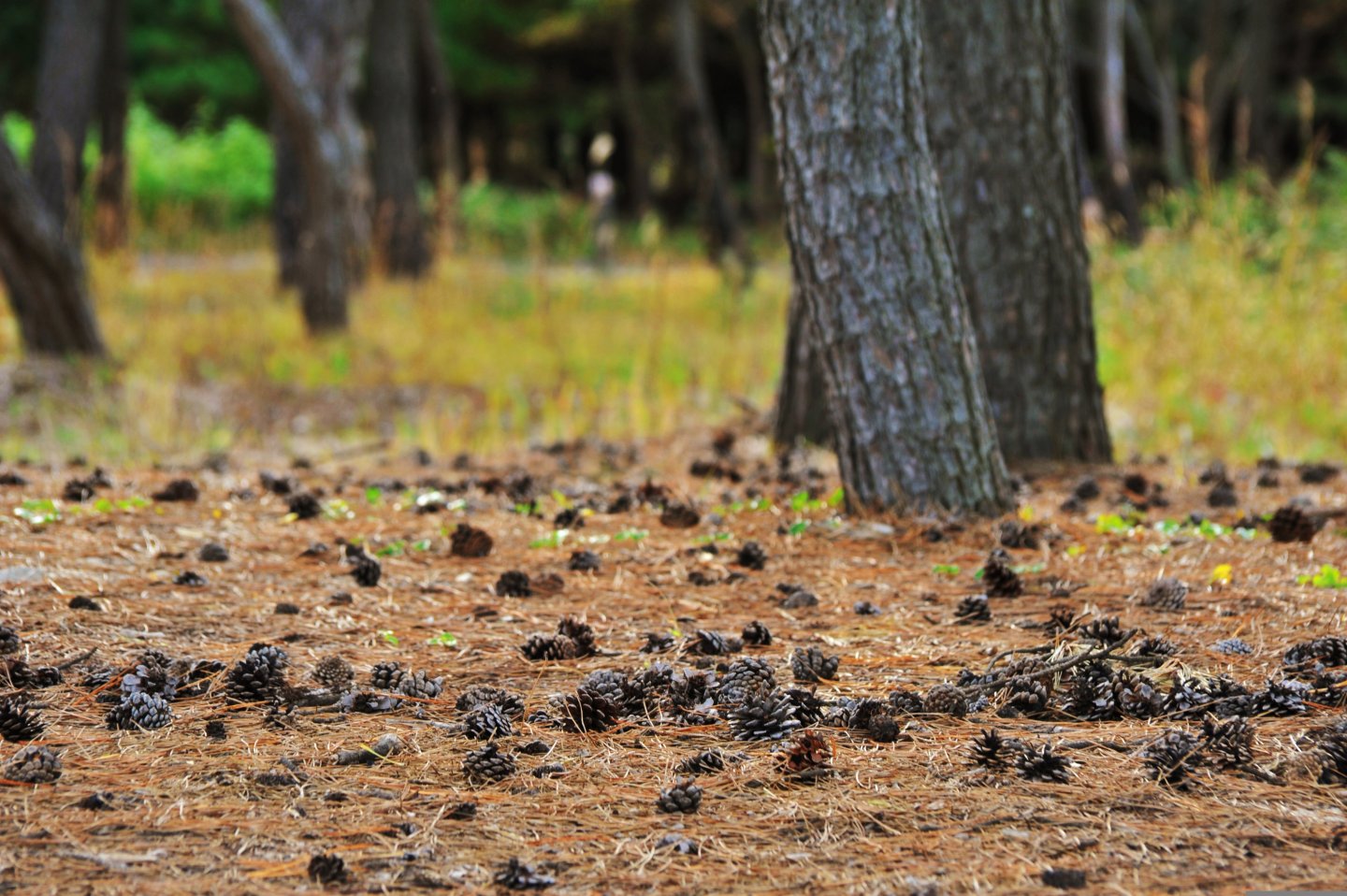 Herabgefallene und abgestorbene Nadeln, Blätter, Zapfen und kleine Äste. Können eine zentimeterhohe Schicht am Waldboden bilden.
