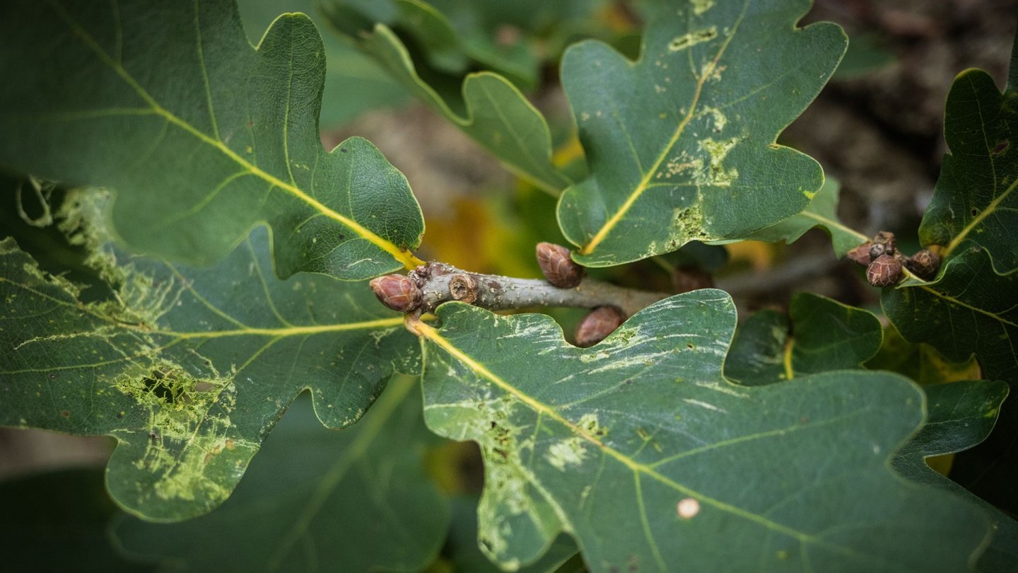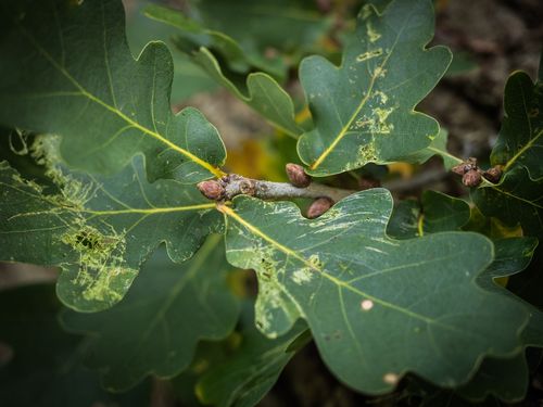 Quercus spp. Wuchshöhe: bis 30 m Stamm: Rinde graubraun, längsrissig, gerippt Blätter: Blätter deutlich gelappt, 6-17 cm lang Knospen: Hellbraune Knospen gehäuft am Zweigende Früchte/Samen: eiförmig mit Hütchen (Fruchtbecher) Fotos: Janina Deutschmann (1), Kerstin Ellersdorfer (2,3)
