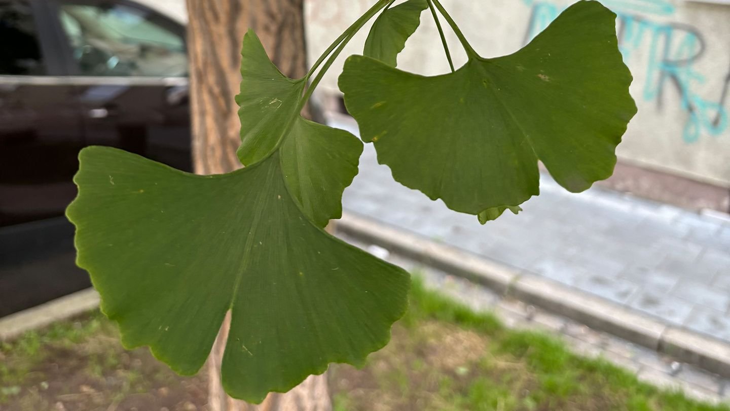 Ginkgo biloba Wuchshöhe: meist bis 20 m, Ausnahmen bis 40 m Stamm: Rinde grau, längsrissig, breit gefurcht Blätter: Blätter fächerförmig, ledrig derb, bis 10 cm lang, mittig eingekerbt, im Herbst auffallend gelb Früchte/Samen: Früchte mirabellenartig gelb, stark unangenehmer Geruch nach „Stinkbombe“ Fotos: Janina Deutschmann (1,2,3)