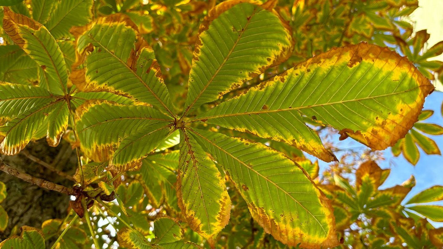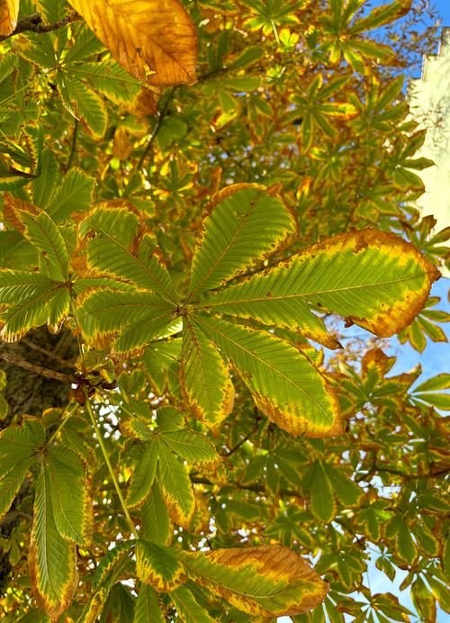 - Blätter: handförmig, aus 5-7 Einzelblättern, bis zu 25 cm lang