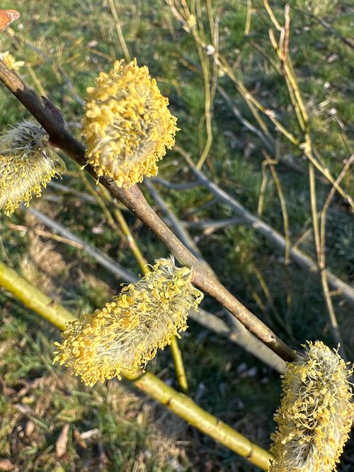 - Blüten: Palmkätzchen (bis 3 cm) mit dichtem silbrigem Pelz ab März