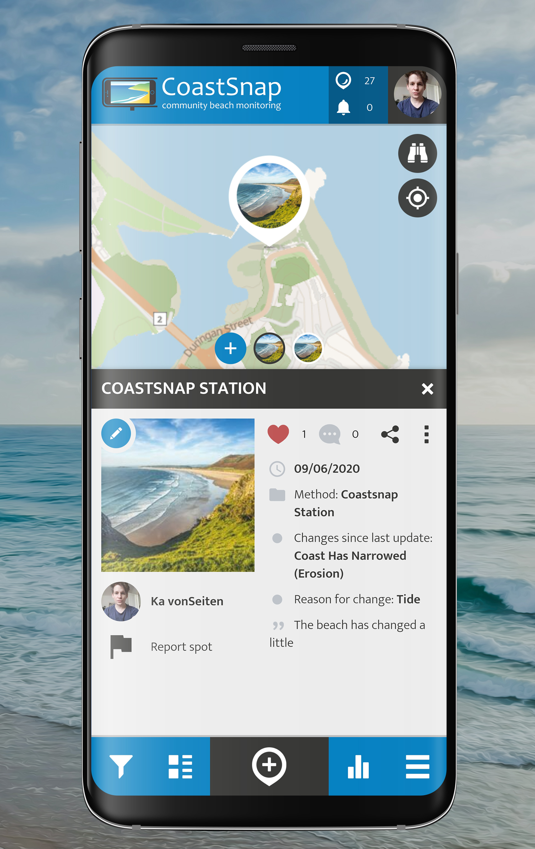 CoastSnap ist ein globales Citizen Science-Projekt zur Erfassung unserer sich stetig verändernden Küsten. Egal wo auf der Welt du dich befindest, wenn du ein Smartphone hast und dich für Küsten interessierst, bist du herzlich willkommen, daran teilzunehmen! CoastSnap verwendet Zeitreihen, also Fotos die immer am selben Ort gemacht werden, um zu verfolgen, wie sich die Küste im Laufe der Zeit aufgrund von Prozessen wie Stürmen, steigendem Meeresspiegel, menschlichen Aktivitäten und anderen Faktoren verändert.