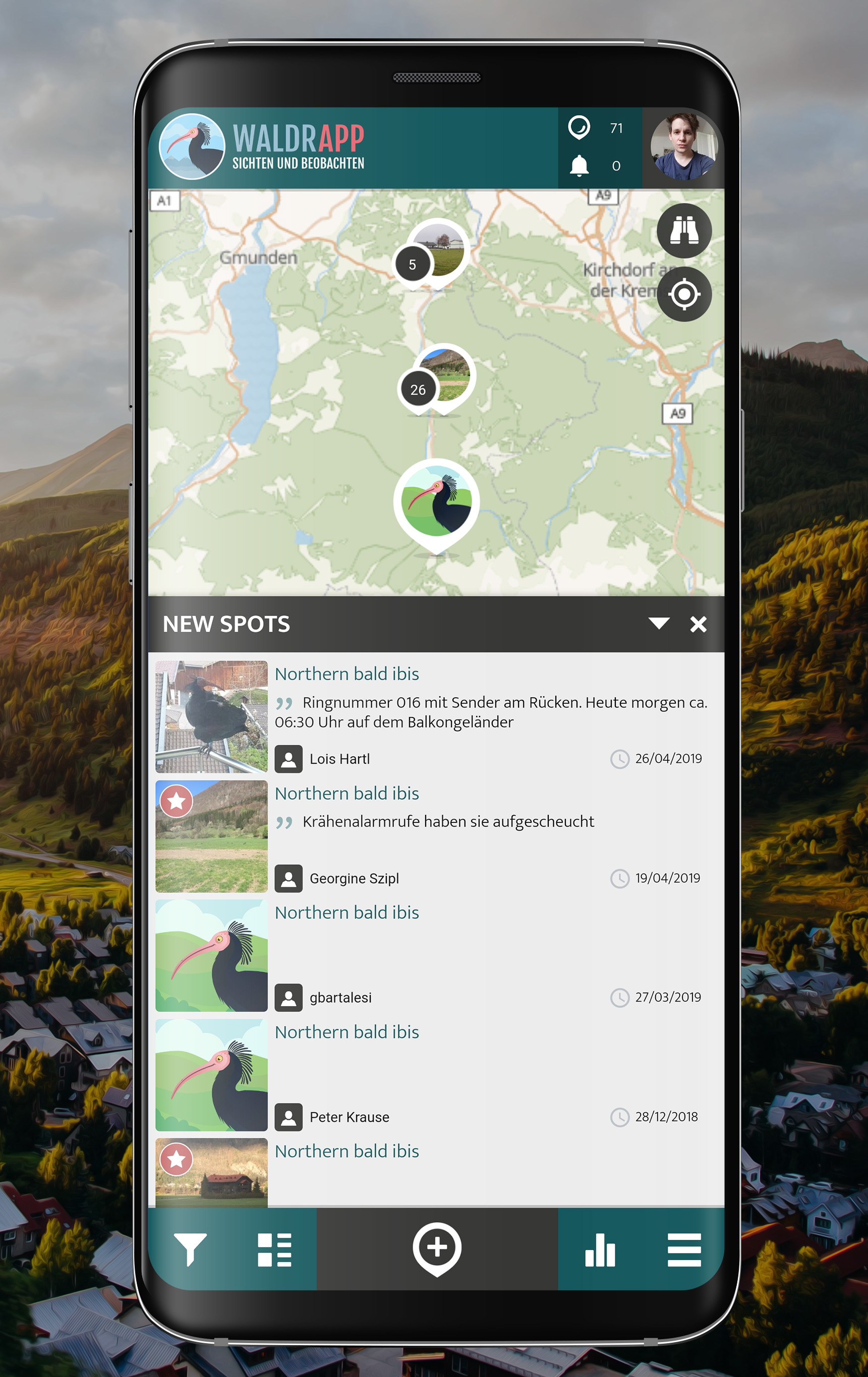 WaldrApp ist ein Citizen Science Projekt der Universität Wien mit dem Ziel, ökologische Informationen über die Aufenthaltsorte des Waldrapp zu sammeln. Da der Waldrapp zu den am meisten bedrohten Vogelarten der Welt gehört, können so (unter anderem) wertvolle Erkenntnisse für Ansiedlungsprojekte gesammelt werden. Jeder kann mitmachen bei diesem Citizen Observatory!