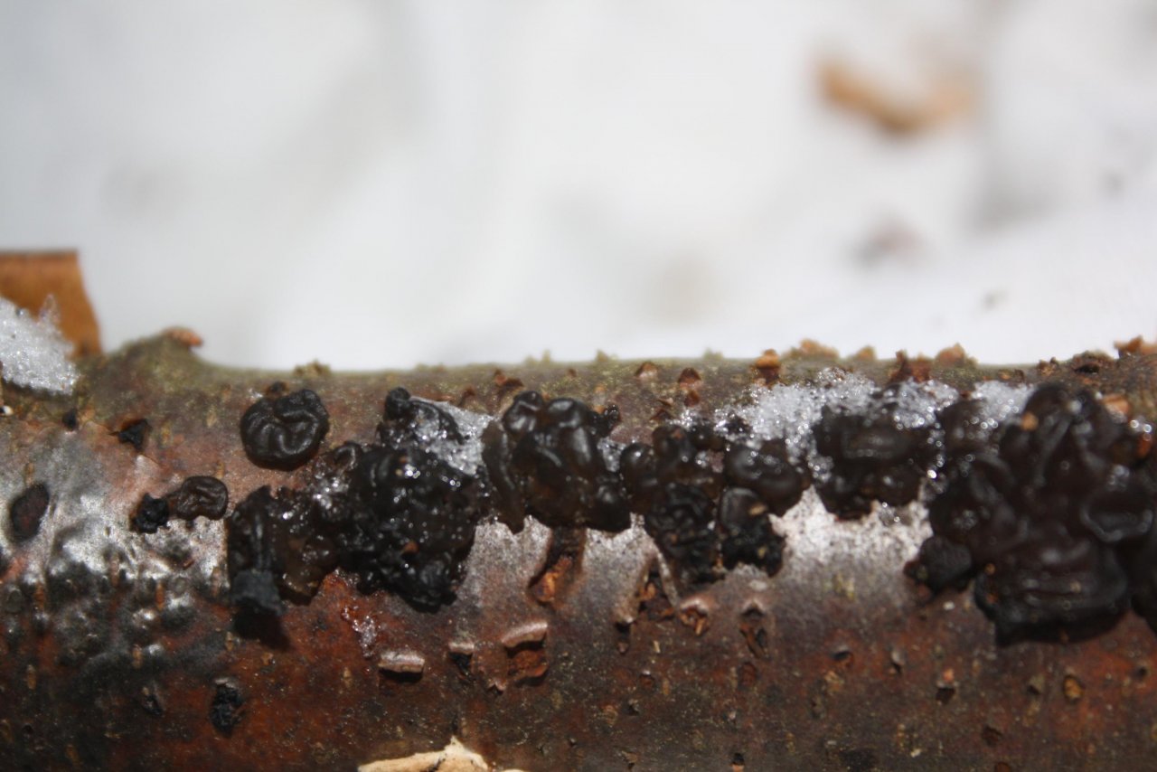 Andere Art spotted by Treitner: “Warzige Drüsling (Exidia nigricans), on a tree trunk; deciduous tree; deadwood;lying;” in the Pilzfinder App on 16.02.2021
