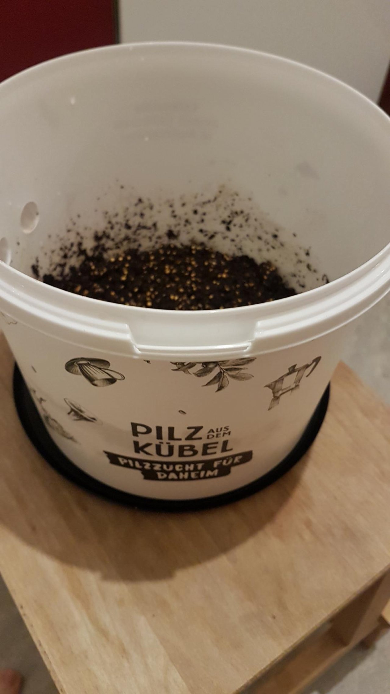 anderer Lamellenpilz (hell) spotted by Ka vonSeiten: “Na dann schauen wir mal ob das was wird:) Pilzkübel, Zucht von Austernpilzen zuhause mittels Kaffeesatz. Day one.” in the Pilzfinder App on 30.12.2020