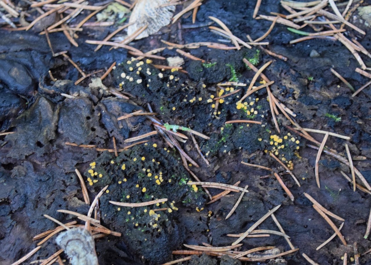 anderer Schleimpilz spotted by Markus Sabor: “am Auricularia mesenterica Stamm in einem Bereich kleine, gelbe Pilzaggregate, wieder ein Schleimpilz ? - eine Probe wurde entnommen” in the Pilzfinder App on 23.12.2020
