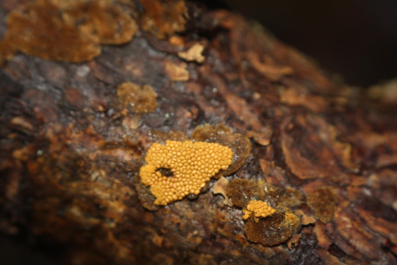 anderer Schleimpilz spotted by Treitner: “Ockerfarbener Neststäubling,(TRICHIA PERSIMILIS), on a branch; conifer; lying; deadwood;” in the Pilzfinder App on 01.01.2021