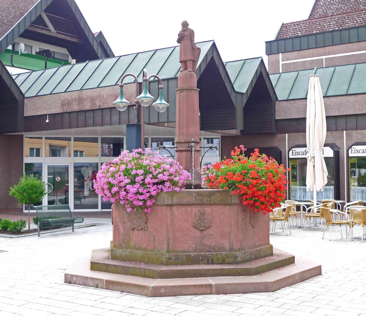 Brunnen spotted by Torsten Englert: “Im August 1922 wurde der Brunnen auf dem Marktplatz zerstört. Der Gemeinderat beschloss deshalb einen neuen, den früheren Zünften gewidmeten Brunnen in Sandstein-Ausführung anfertigen zu lassen. Dessen Anfertigung übernahm das ortsansässige Bildhauer-Unternehmen Carl Bernhard und Söhne. Heute steht der »Zunftbrunnen« auf dem BGM-Schmider-Platz vor dem »Erfapark« in der Würzburger Straße und plätschert aus vier Rohren beruhigend vor sich hin.” in the Landauf, LandApp BW App on 21.01.2021