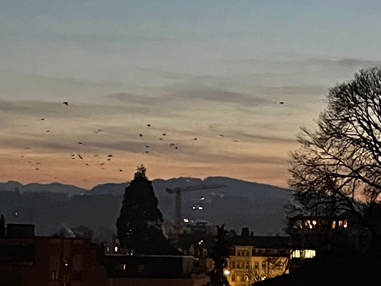 Carrion Crow spotted by Andreas Ryser: “Abendliche Rückflug zu den Schlafbäumen.” in the KraMobil App on 16.12.2020