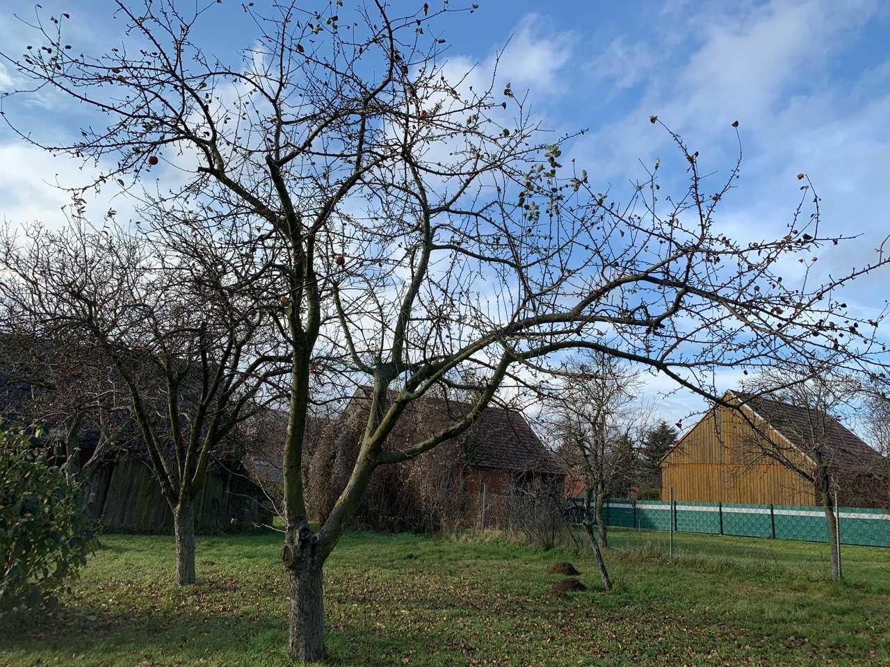 Fast alle Blätter des Apfelbaums liegen am Boden. | Naturkalender App | 09.12.2020