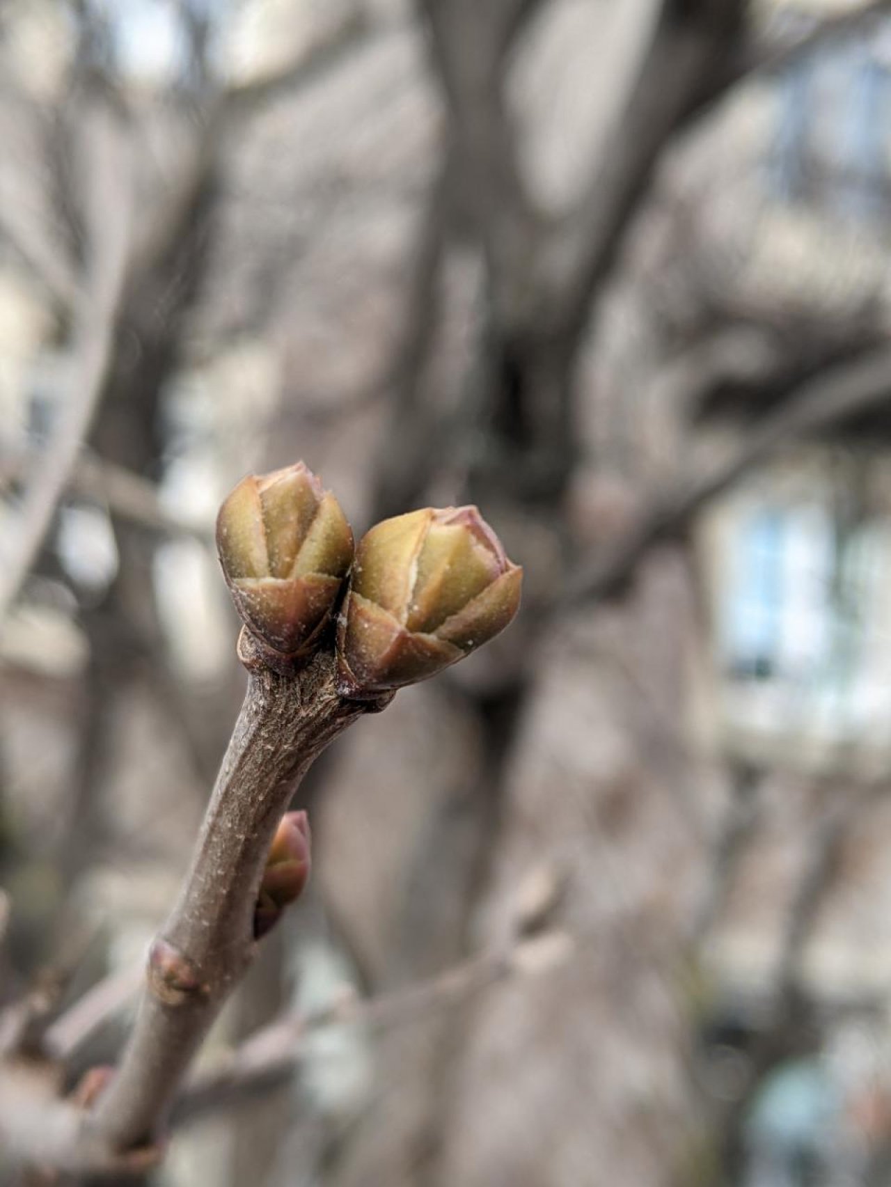Flieder spotted by Heemuul: “Flieder - Knospen sind ein wenig gewachsen, aber noch nicht grün. Von Knospenaufbruch noch keine Rede. Bei anderen Fliedern hab ich aber schon einige grüne Knospen gefunden.” in the Naturkalender App on 24.01.2021
