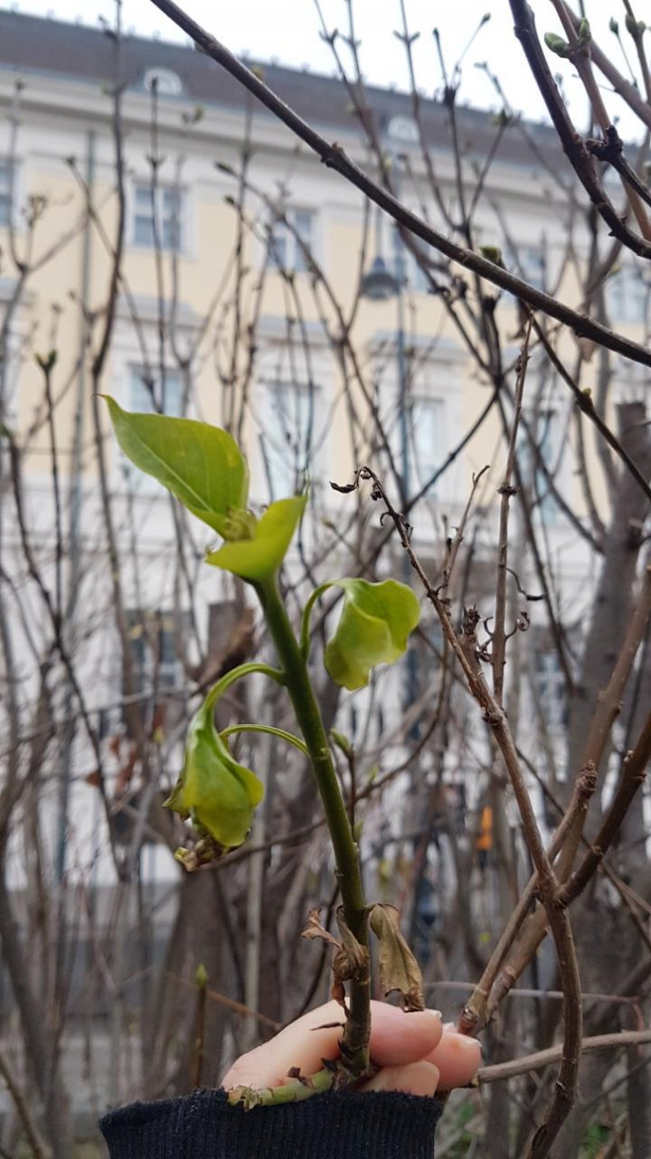 Flieder spotted by Ka vonSeiten: “Frische Blätter am Flieder, auch an mehreren Stellen des Strauchs.” in the Naturkalender App on 02.01.2021