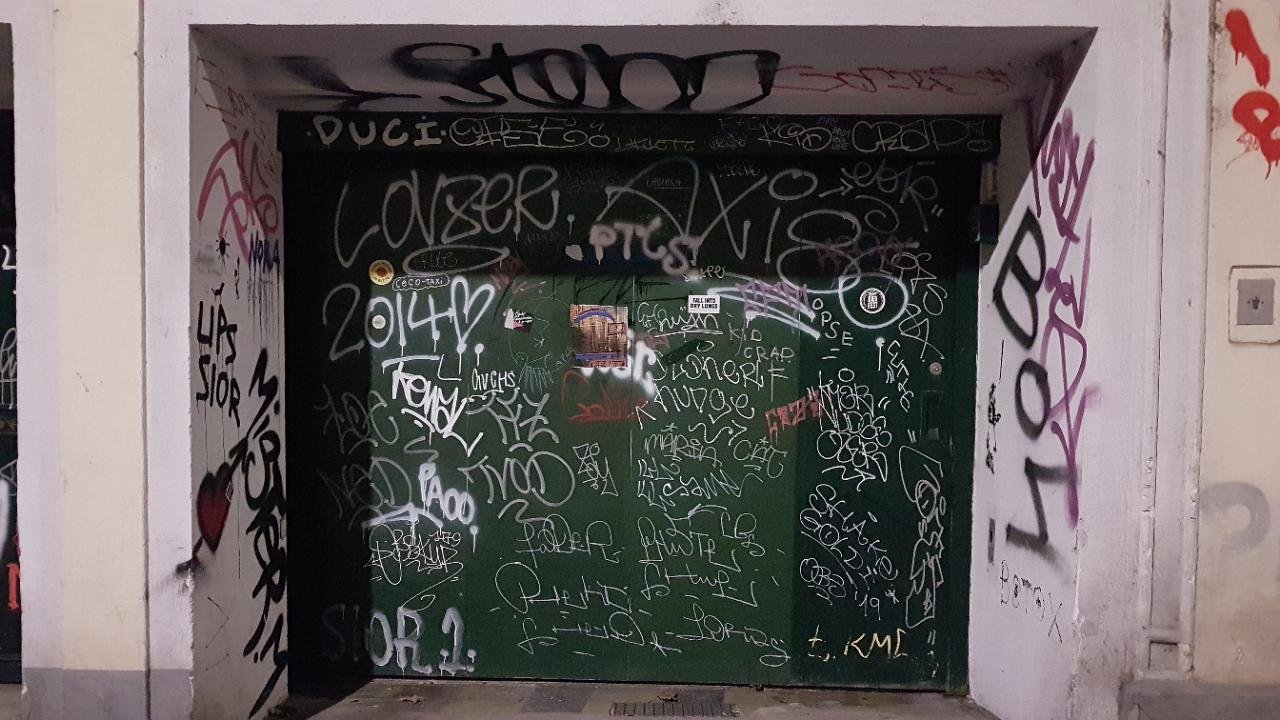 Graffiti spotted by Ka vonSeiten: “Garage Tag door, the whole alley is full of tags. Must revisit too:)” in the ArtSpots App on 30.12.2020
