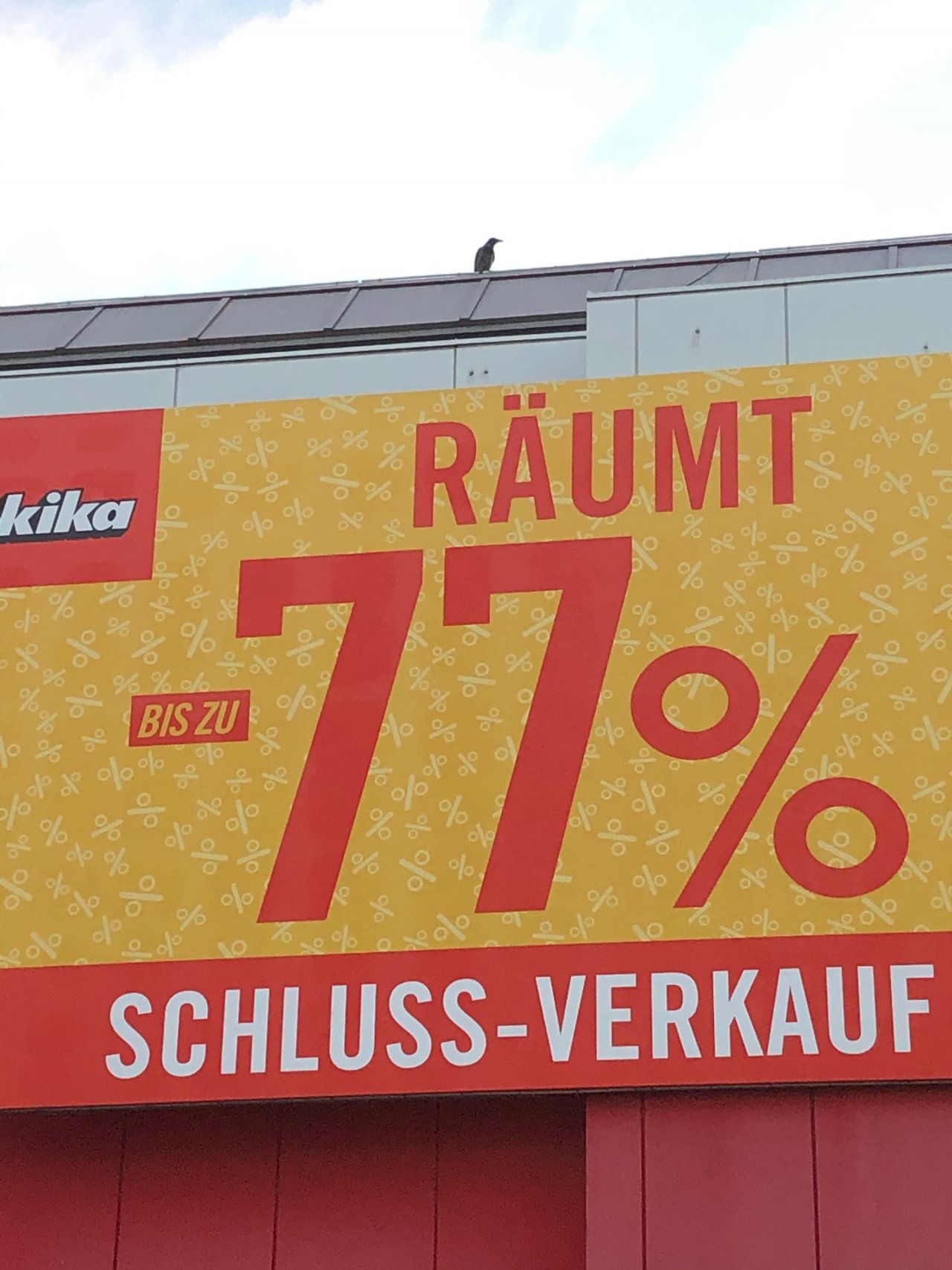 Hooded Crow spotted by Krarin: “Schlussverkauf und alles hat zu?!🤭😱🤪” in the KraMobil App on 31.12.2020