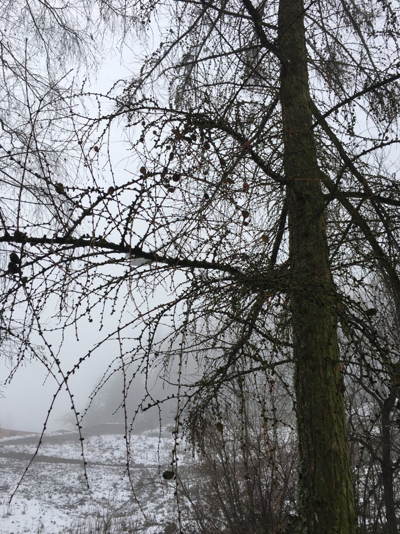 Lärche spotted by Ursula Jahn: “Vor einem Tag waren noch 40 % der Nadeln am Baum. Durch den Schnee und die exponierte Lage ist die Lärche bis auf wenige Nadeln kahl. 500 m entfernte Lärchen, die durch ihren Standort am Waldrand besser geschützt sind, tragen noch 50 % ihrer Nadeln.” in the Naturkalender Oberösterreich App on 12.12.2020