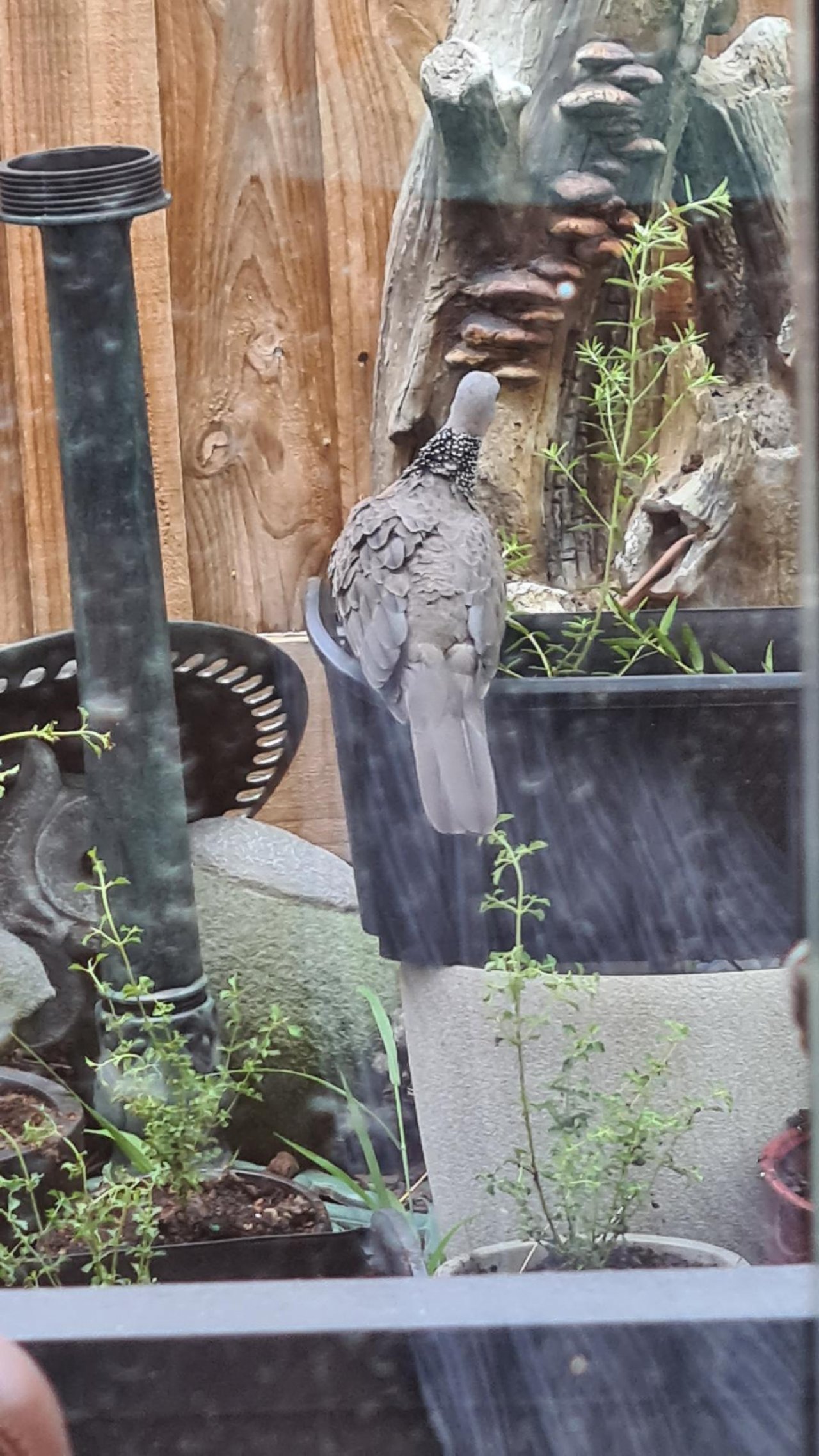 Other bird spotted by Natalya: “Spotted dove perched upon my new native plants potted last night” in the Big City Birds App on 15.12.2020
