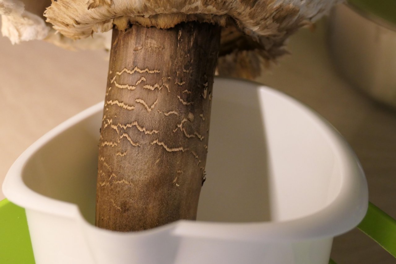 Parasol spotted by Valerian Scherer: “Auch die Natterung am Stiel ist bei dem Exemplar ganz besonders und kaum vorhanden.” in the Pilzfinder App on 24.12.2020