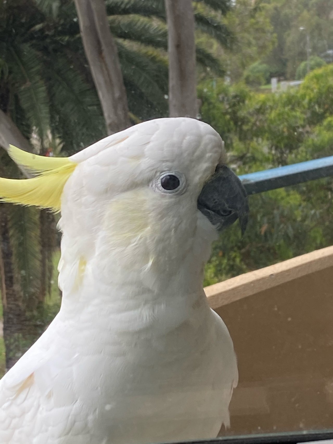 Sulphur-crested Cockatoo spotted by Steve Paton: “Just moving around on balcony - appears keen to be fed.” in the Big City Birds App on 21.12.2020