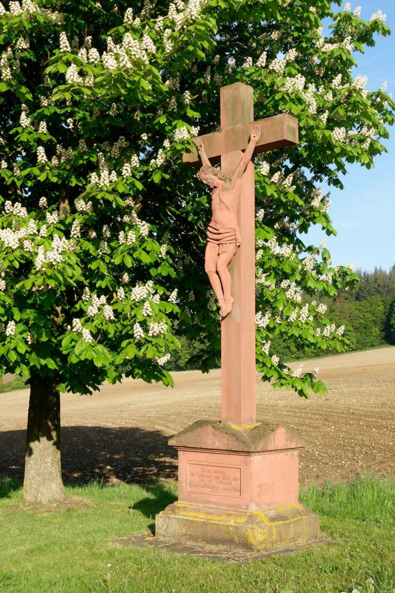 Wegkreuz spotted by Stefan Gerl: “Jesus am Kreuz Inschrift: "ES IST VOLLBRACHT DU GOTTMENSCH HAST GESIEGT ÜBER SÜND UND TODESMACHT - ERRICHTET VON VALLENTIN HORN U DESSEN EHEFRAU 1854"” in the Landauf, LandApp BW App on 21.01.2021