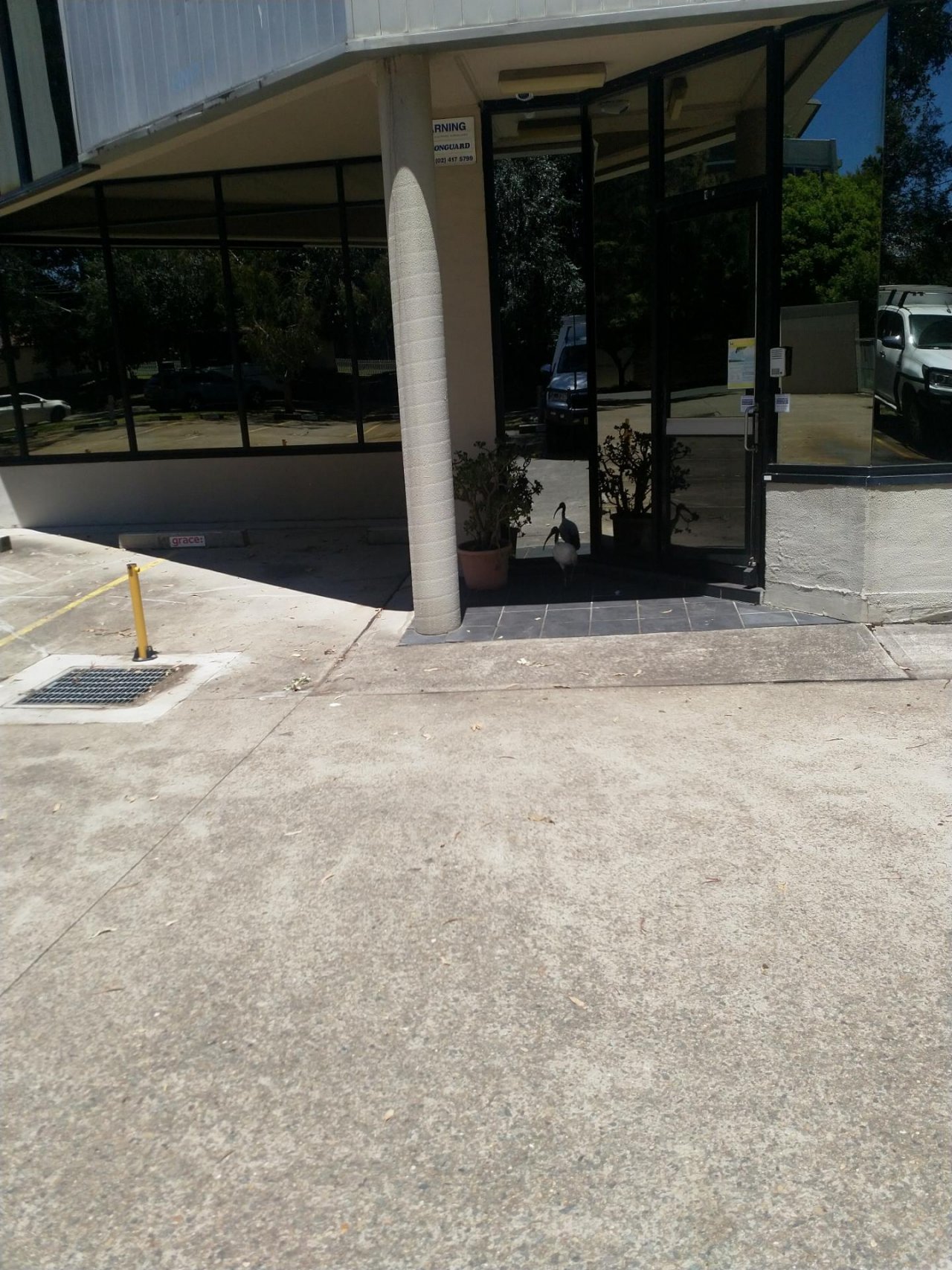 White Ibis spotted by DUnitt: “It's a warm day, and it was taking shade in the door way of an office. Tried to give it water, but it moved away and eventually settled in another doorway.” in the Big City Birds App on 10.01.2021