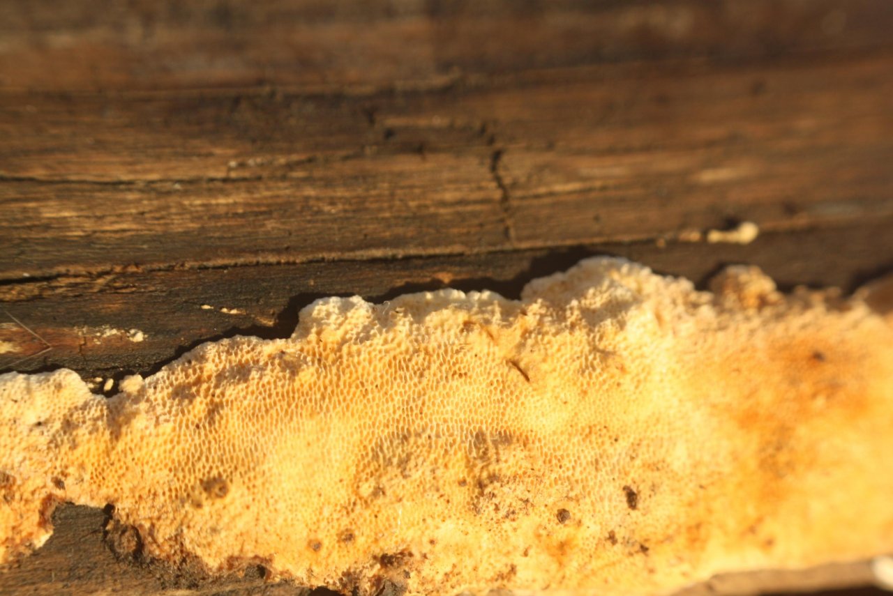 anderer Porling spotted by Treitner: “Duftender Goldporling(,AURIPORIA AURULENTA), on a tree trunk; lying;coniferous wood; dead wood;” in the Pilzfinder App on 14.12.2020