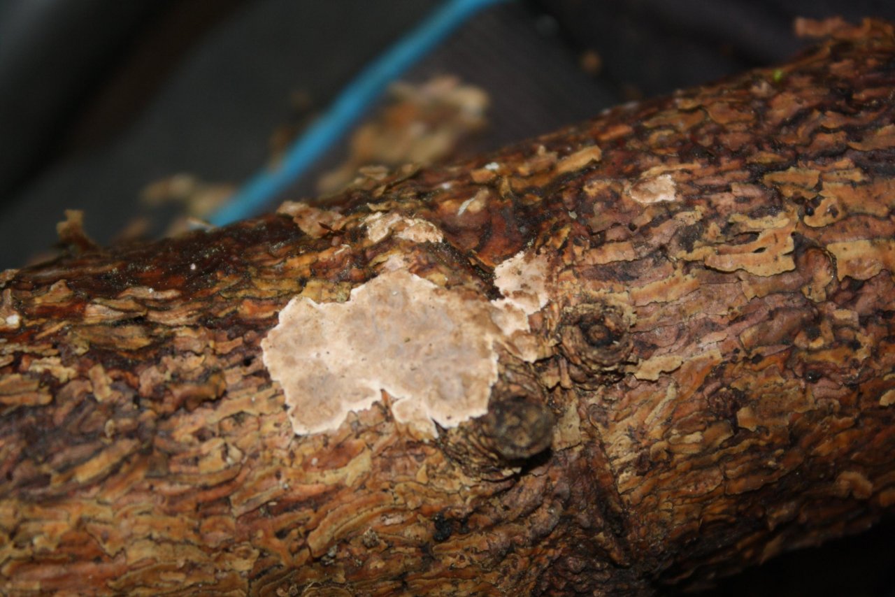 anderer Schichtpilz spotted by Treitner: “Genus Stereum, on a branch; deciduous tree; lying; deadwood;” in the Pilzfinder App on 01.01.2021