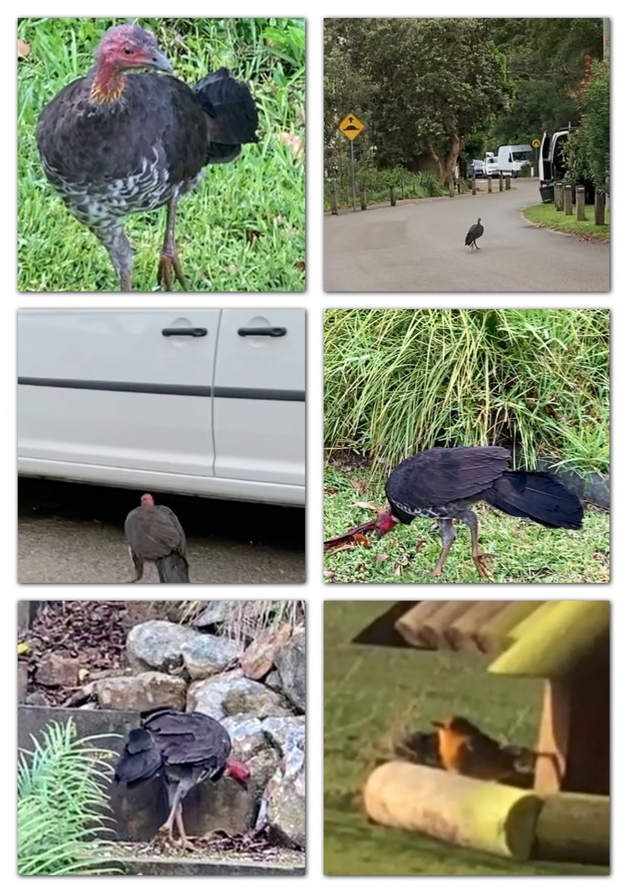 Brush-turkey spotted by ednaward: “Making its way home from the beach this morning. Final photo of Robin Red Breast was taken yesterday in Cheshire. Just filling up empty space!” in the Big City Birds App on 19.02.2021