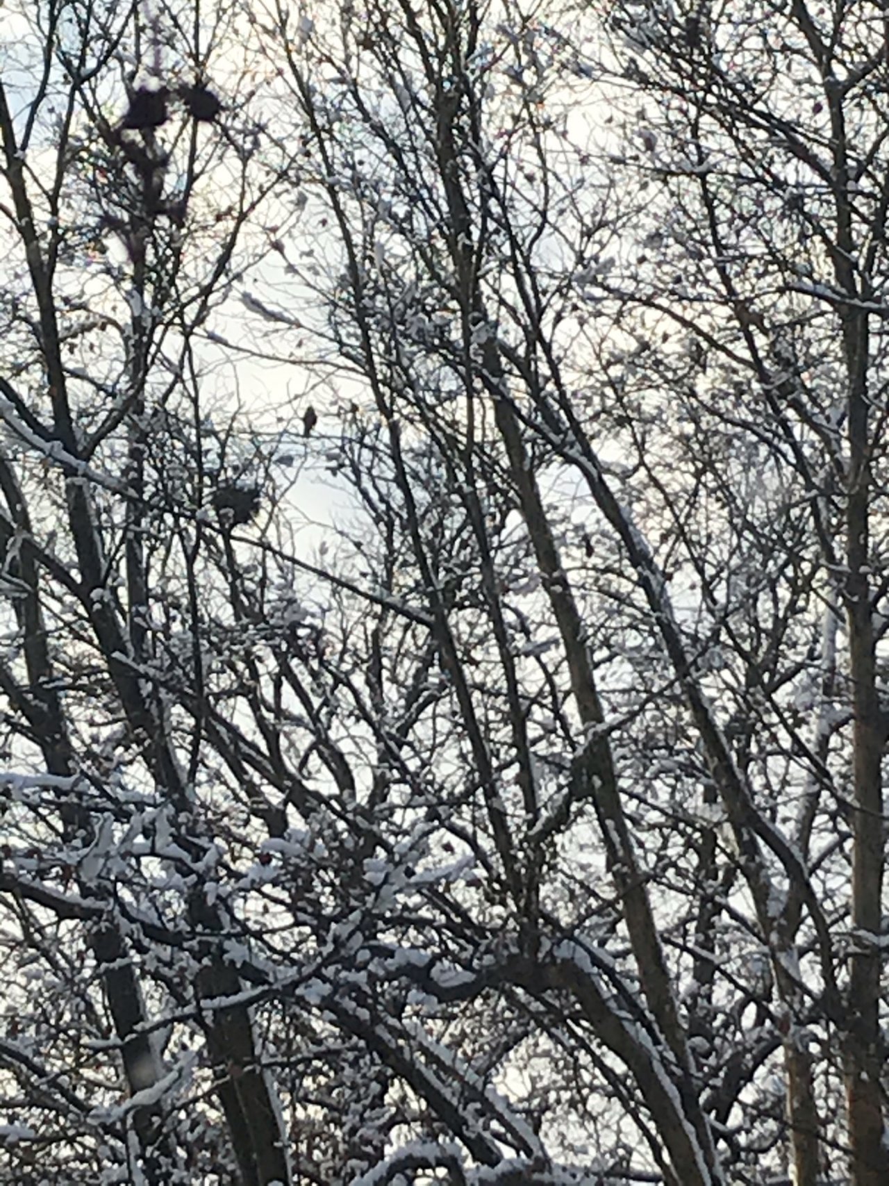 Carrion Crow spotted by Maleit: “Krähe sitzt ca 20 Minuten nahezu unbeweglich in der Nähe ihres (wahrscheinlich) Nests. Eine zweite Krähe fliegt ein paar Mal vorbei.” in the KraMobil App on 07.01.2021