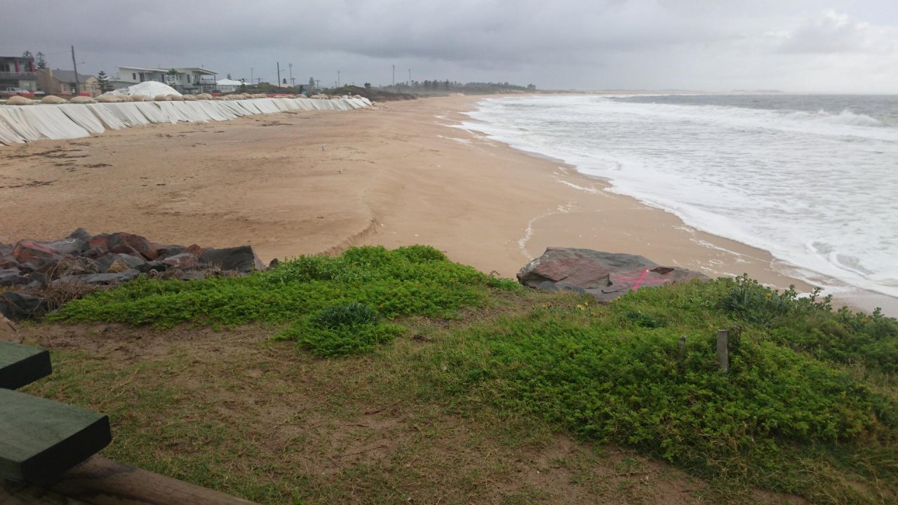 Coastsnap Station spotted by Stockton1: “Steep beach, eroded berm, moderate onshore wind and swell, 2-3m waves for last 3 days has eroded lower beach.” in the CoastSnap App on 19.02.2021