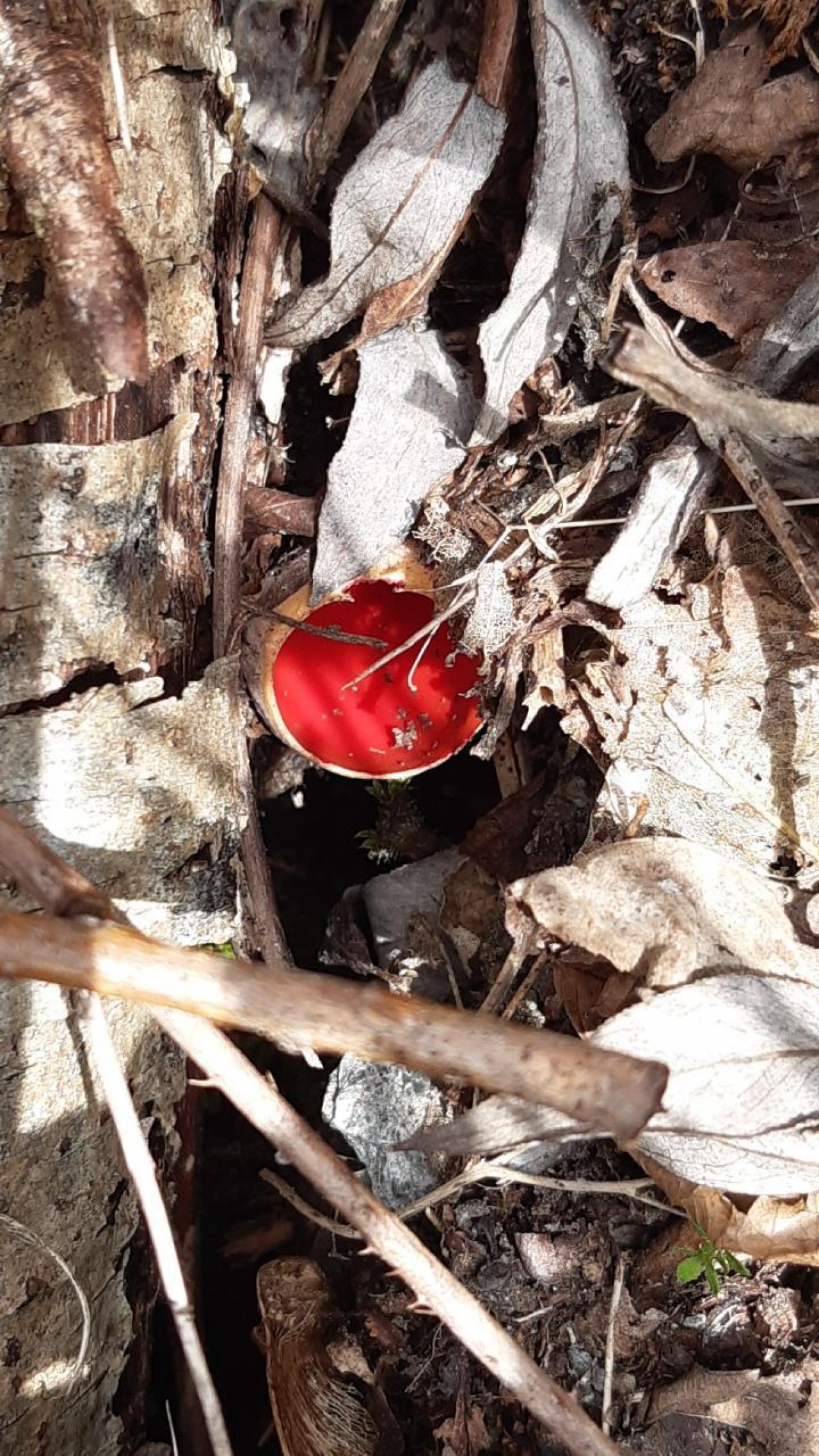 Eine andere Art spotted by Steinbock: “Zinnoberroter Kelchbecherling, Sarcoscypha austriaca, auch heuer wieder zu finden !” in the Naturkalender App on 07.03.2021