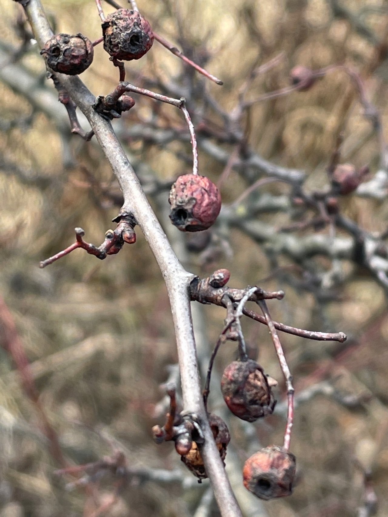 Eine andere Strauchart spotted by Franz: “Früchte des Eingriffeligen Weißdorns haben ihr Aussehen deutlich verändert.” in the Naturkalender App on 31.01.2021