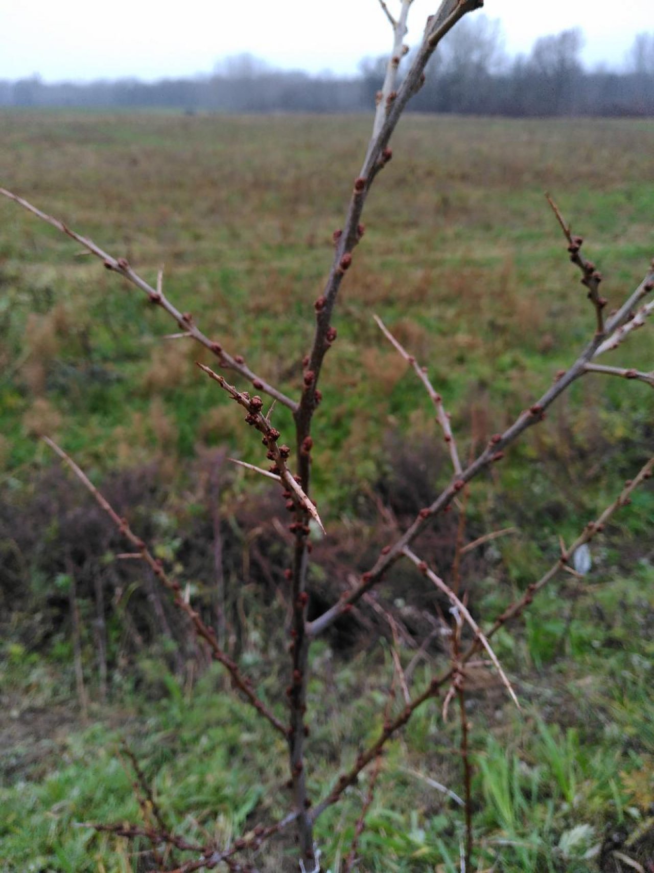 Eine andere Strauchart spotted by TheOSWR: “Im Rahmen einer Bepflanzungsaktion wurden um die 100 Sträuchern gepflanzt, da ein neuer Radweg errichtet wurde. Die Pflanzen sind alle keine neophyten, und hitzebeständig, ausgewählt von einer biologin der BOKU. (z. B : Wolliger Schneeball, einige Eichen, Sanddorn, Weiden, Zierapfel, Mehlbeere) So kann gutes Umweltmanagement gehen! hier im Bild ein Sanddorn mit großen Knospen.” in the Naturkalender App on 18.12.2020