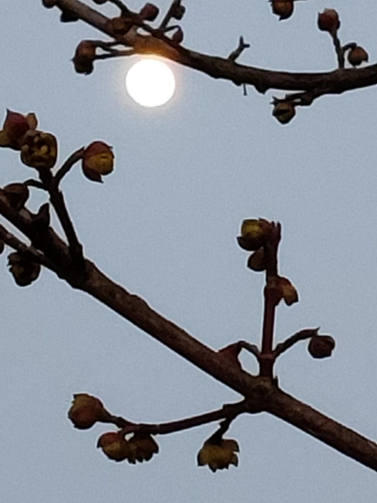Kornelkirsche / Dirndl spotted by Susi: “Vollmond "hängt" im Dirndl Strauch” in the Naturkalender App on 25.02.2021