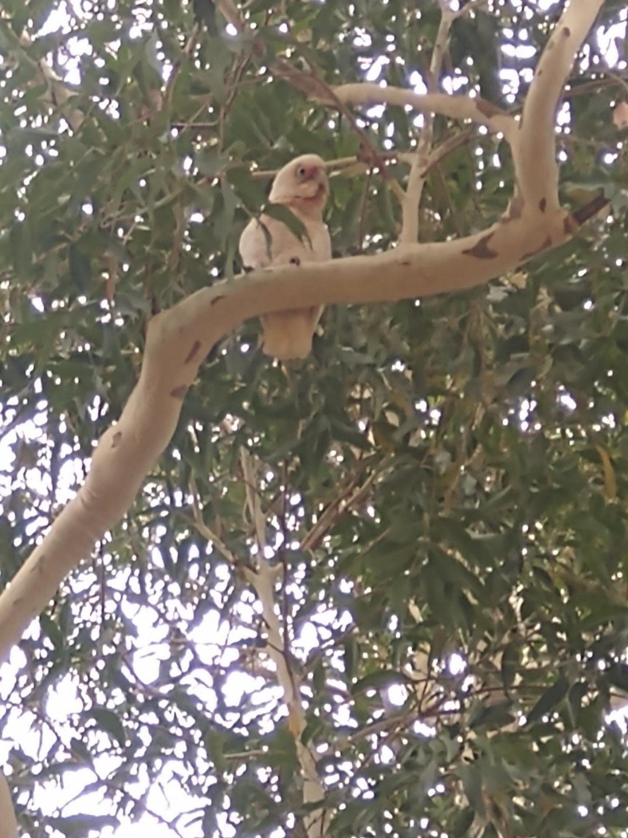 Little Corella spotted by Anna: “Lone corella among cockatoos in the trees” in the Big City Birds App on 14.12.2020